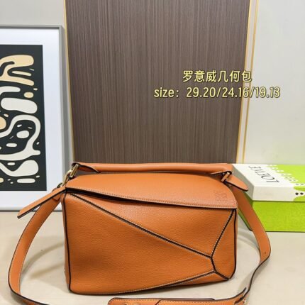 LOEWE Puzzle Grained Leather Geometric Bag – 3 Sizes & Multiple Colors Available (29×20/24×16/19×13cm)