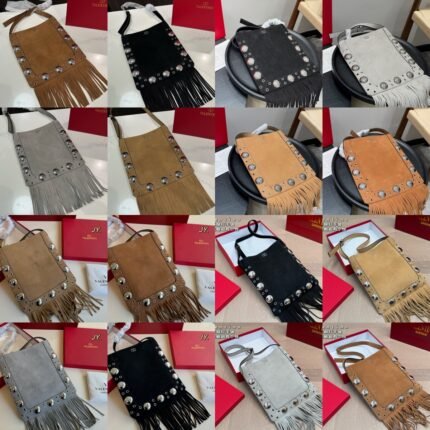 Valentino Studded Fringe Bucket Bag – Suede Multi-Color Shoulder Bag, Light Luxury Retro-Style Women’s Bag