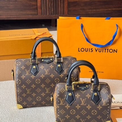 LV’s classic canvas paired with a black leather handle, vintage yet fashionable