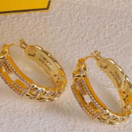 These Fendi hoop earrings embody bold sophistication, featuring intricate chain-link detailing, radiant gold-tone plating, and sparkling crystal embellishments. Crafted in