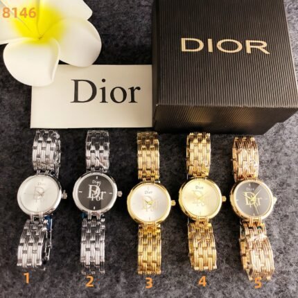 Dior 8146 series watches epitomize high-fashion elegance, featuring round dials with prominent “Dior” branding, sleek metal bracelets, and refined tones