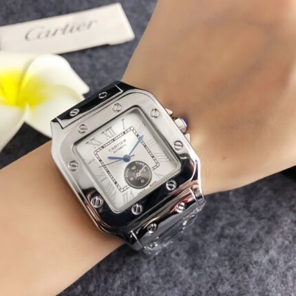 Cartier 8552 series watches embody timeless luxury, featuring the brand’s iconic square dials with Roman numerals, intricately designed metal bracelets