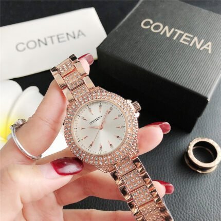 CONTANA watch with round diamond bezel and premium dial with steel band