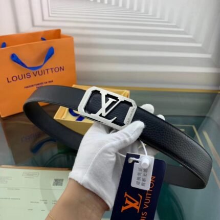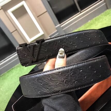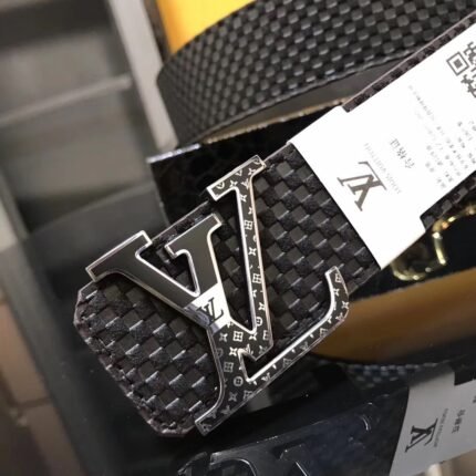 This Louis Vuitton V-shaped buckle black textured belt combines the brand’s traditional craftsmanship with modern design, demonstrating extraordinary nobility and