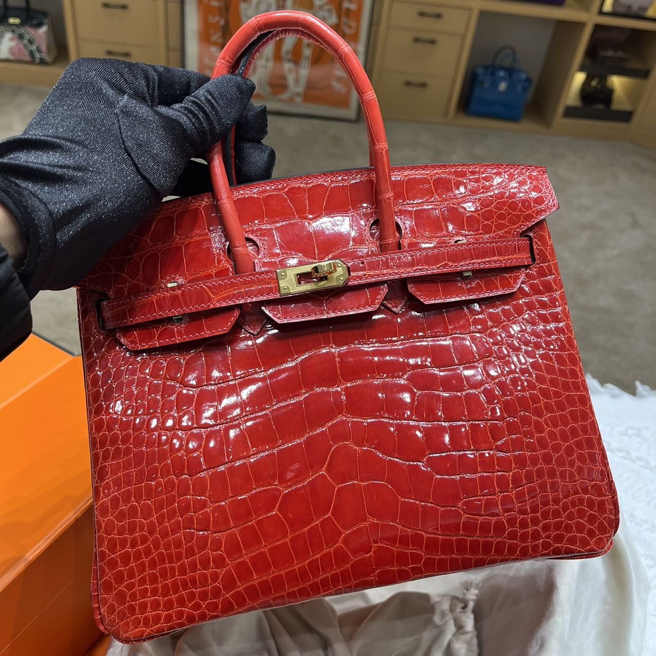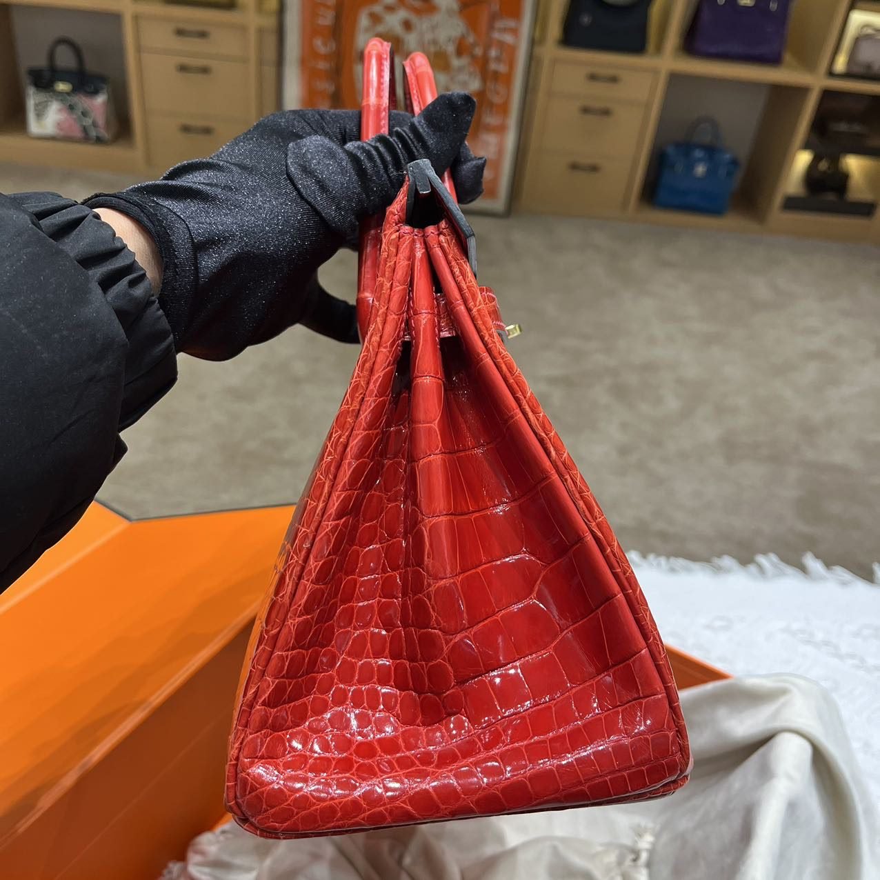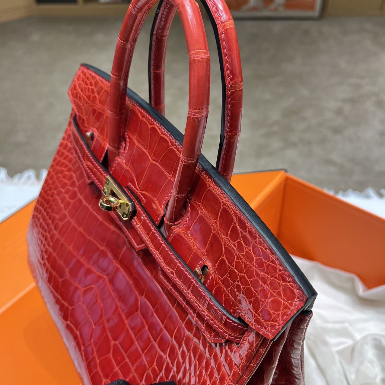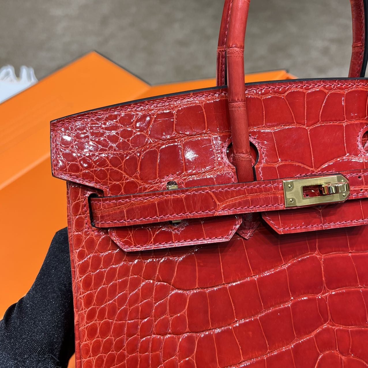 ✨✨Bikkin Platinum 25cm✨✨✨95 Ferrari Red ➕America🐊 The combination of the belly red and the gold clasp is like a social mixer with the determination to “win”.