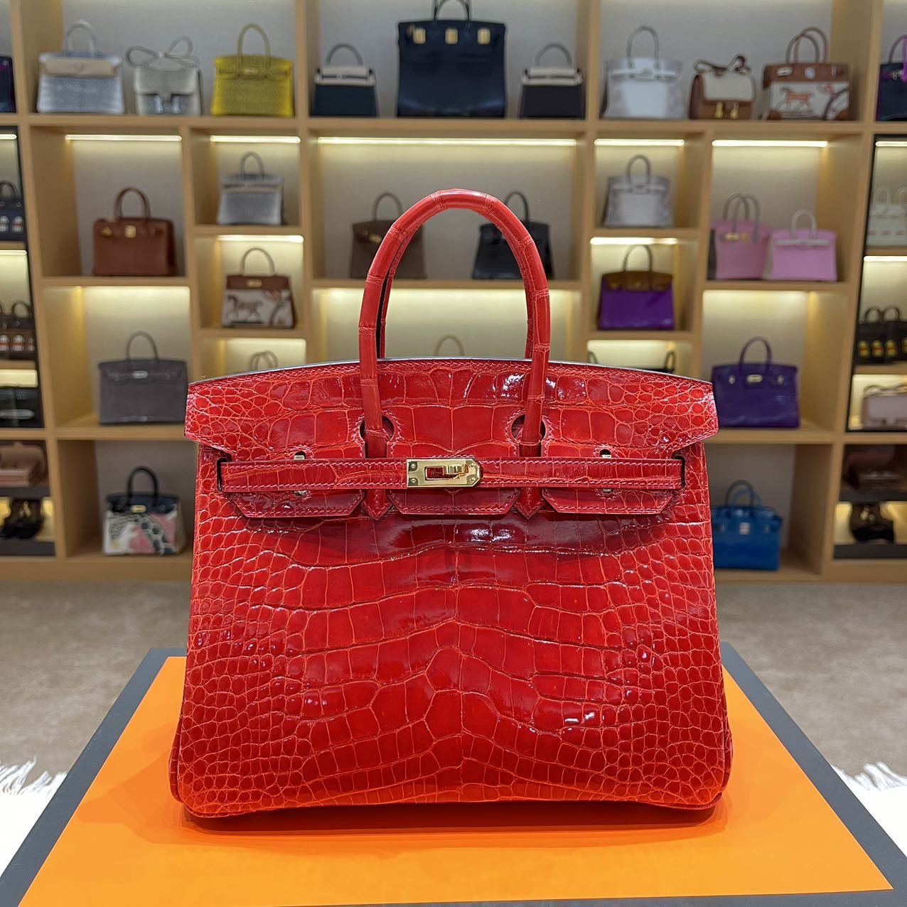 Home BAGS Top Crocodile Bags ✨✨Bikkin Platinum 25cm✨✨✨95 Ferrari Red ➕America🐊 The combination of the belly red and the gold clasp is like a social mixer with the determination to “win”.