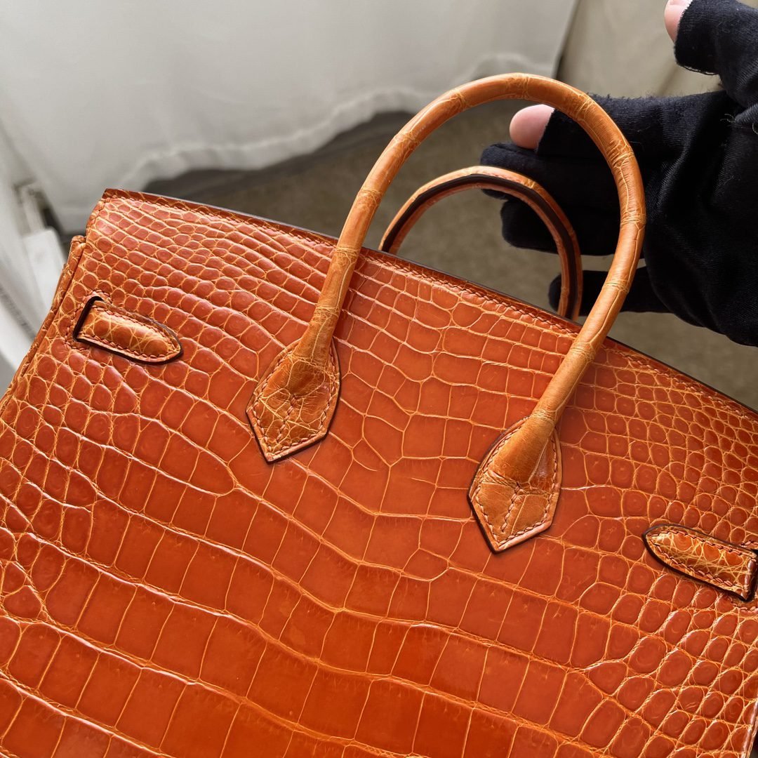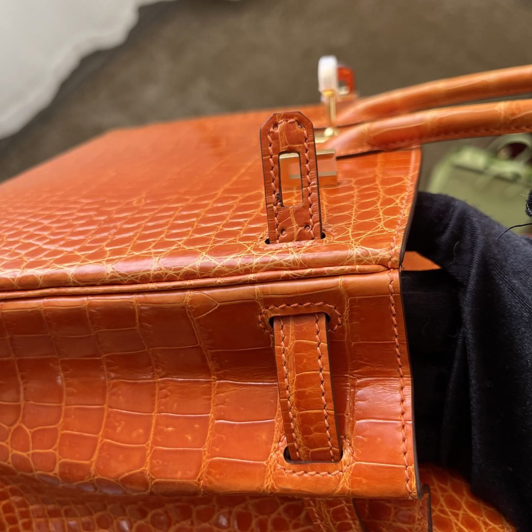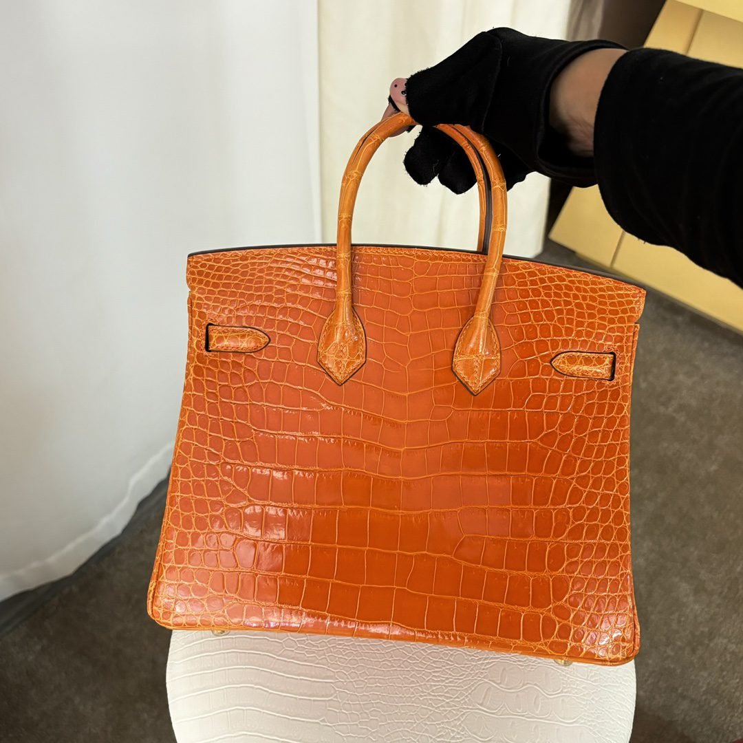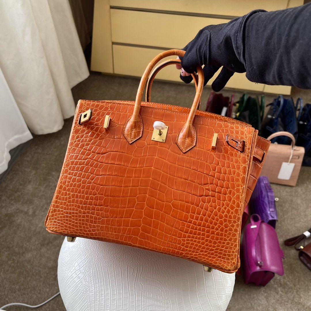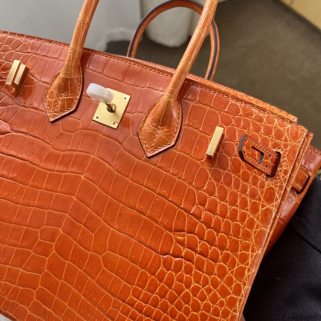 ✨✨Birkin Platinum 25cm✨✨✨Flame Orange Gold Buckle ➕Three Glossy Crocodile🐊Belly really shows off the white color Carrying an energizing feeling🧡🧡