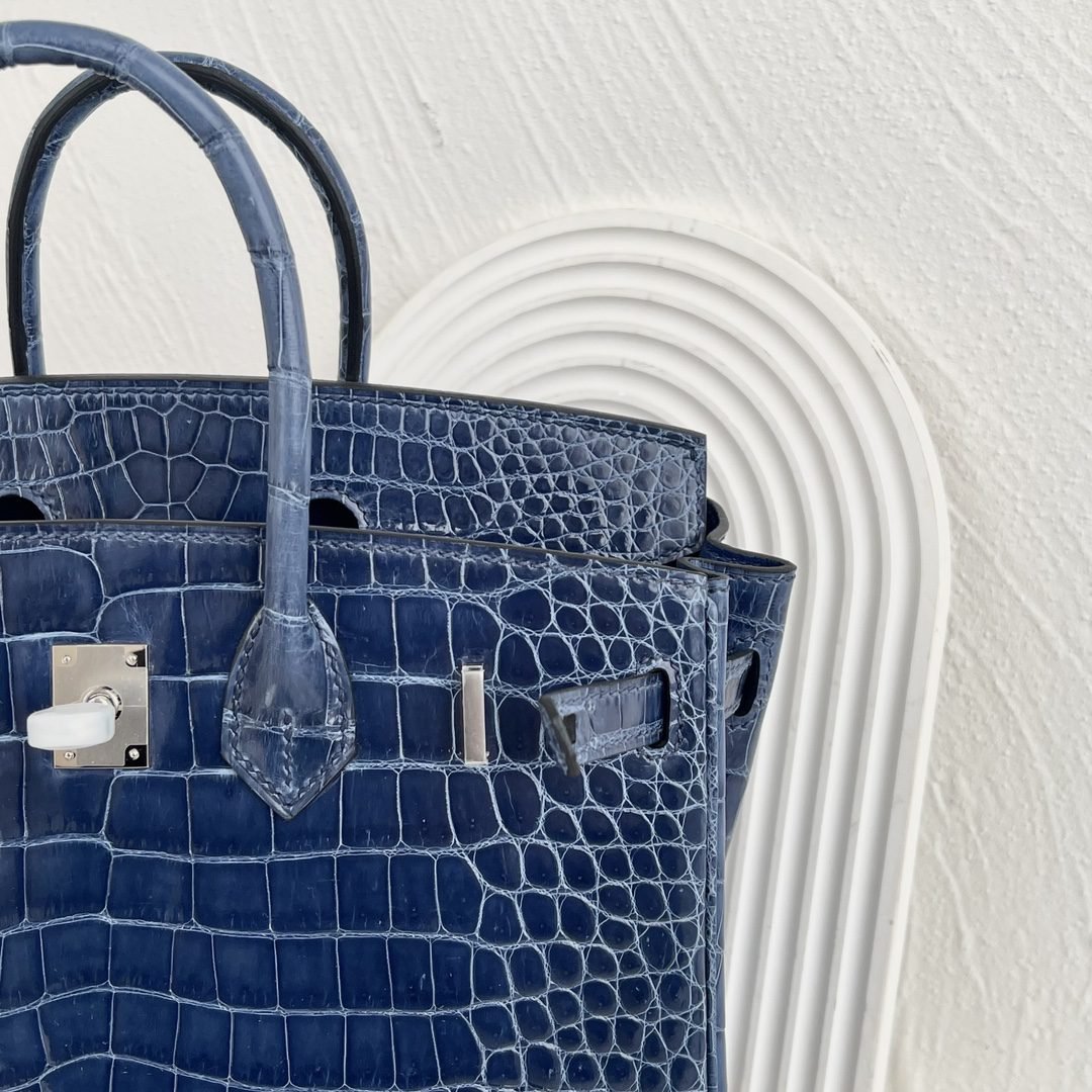 ✨✨Birkin Platinum 30cm✨✨✨ Denim Blue Silver Buckle ➕Three Highlights Crocodile🐊 Belly is a stunning color Subdued and understated Let’s love it!