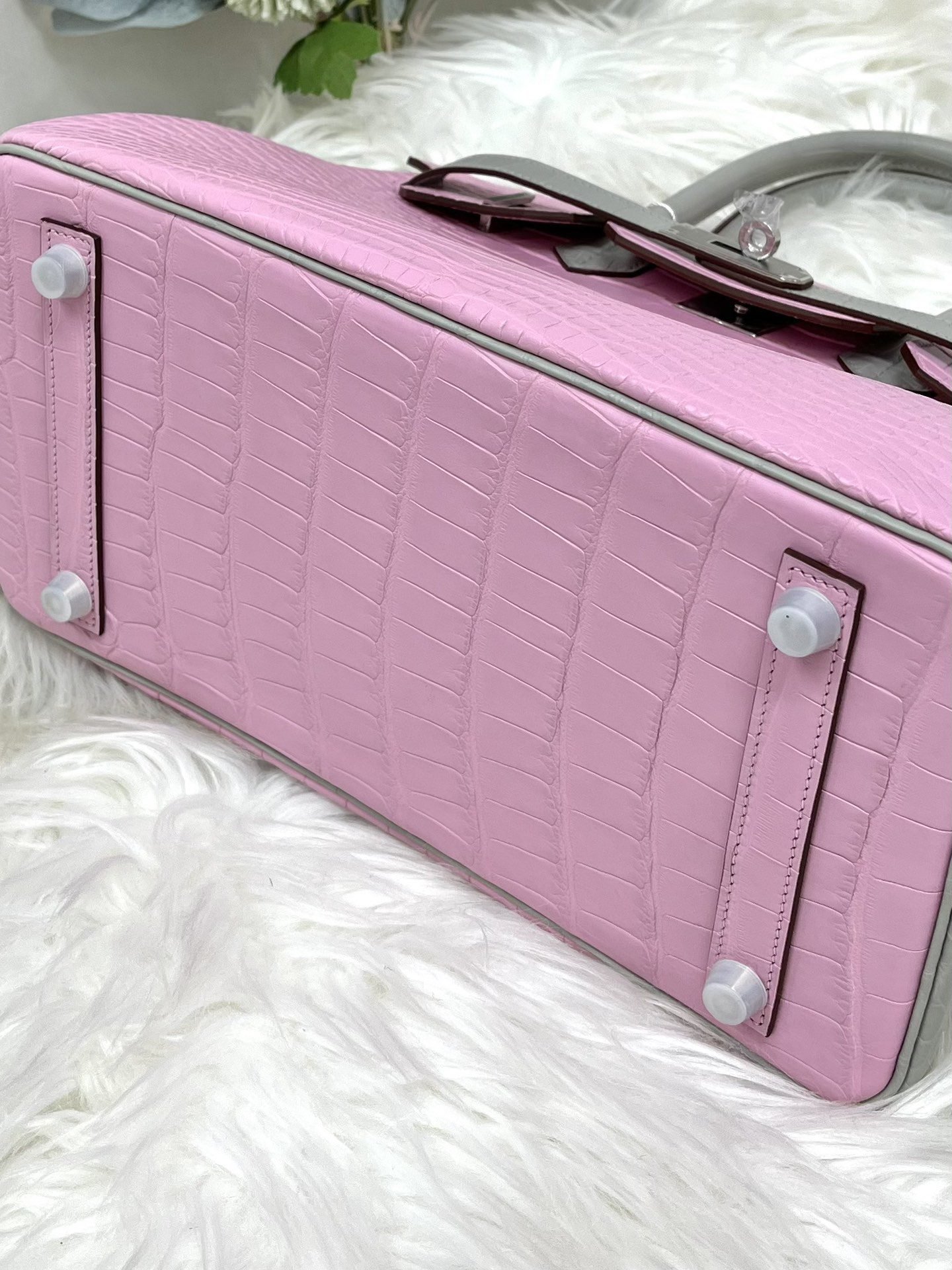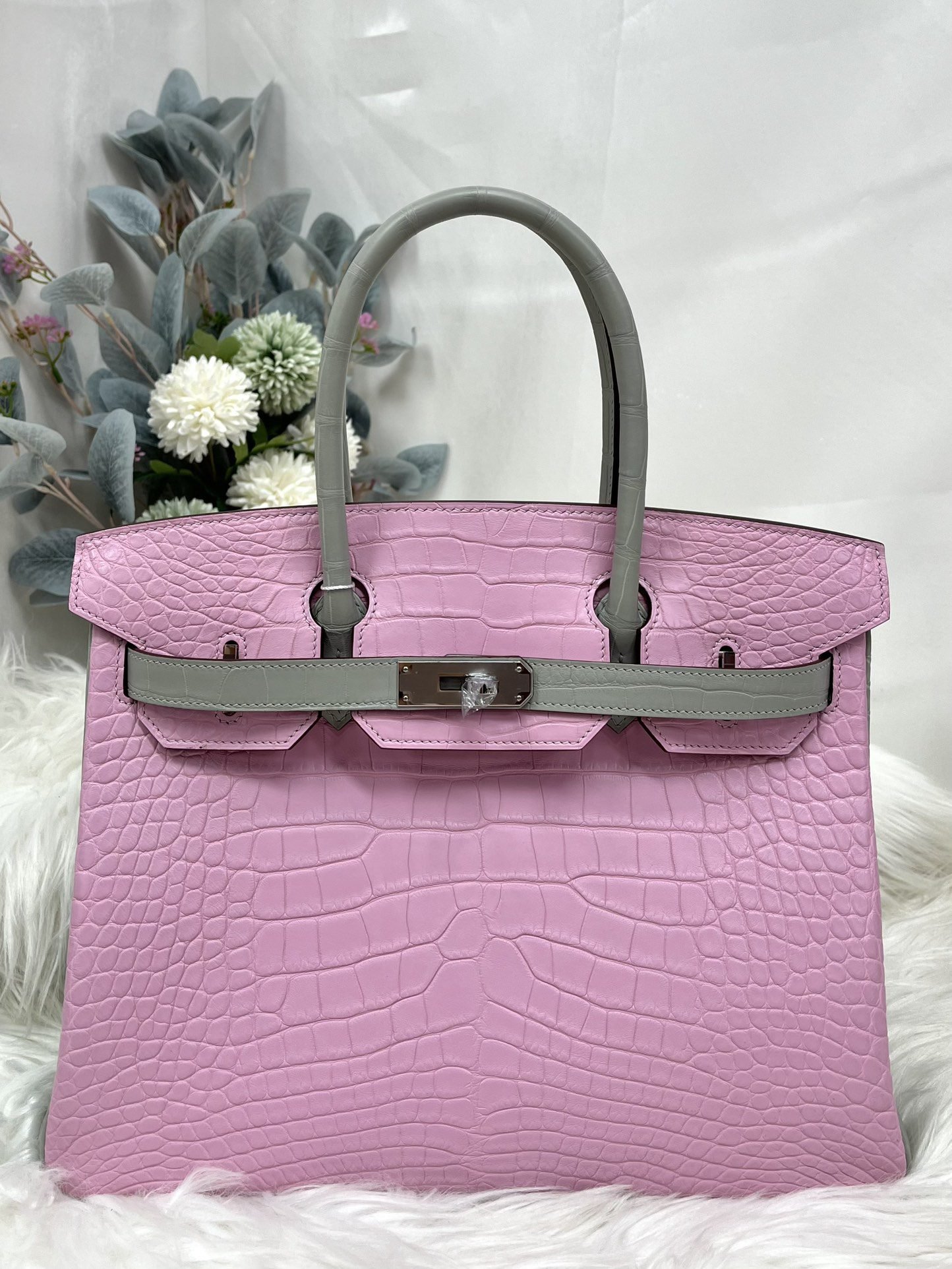 Home BAGS Top Crocodile Bags ✨✨Birkin Platinum 30cm✨✨✨Silver Buckle 3Q Cherry Blossom Pink Pieces 80 Pearl Gray ➕Three Americas🐊 Leather Understated elegance, grey color with the popular light colors, is really gentle, who can not resist! 🌸