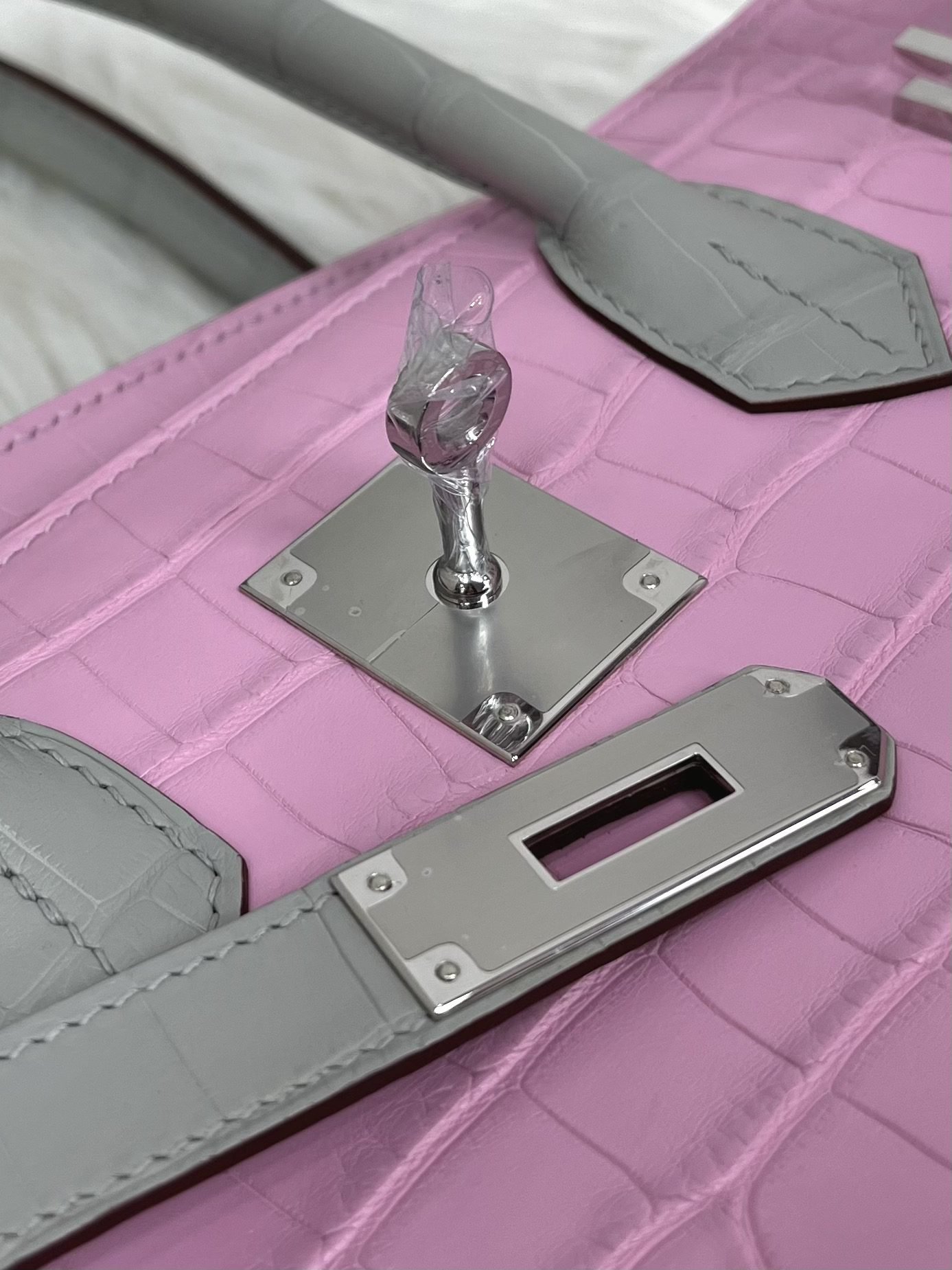 ✨✨Birkin Platinum 30cm✨✨✨Silver Buckle 3Q Cherry Blossom Pink Pieces 80 Pearl Gray ➕Three Americas🐊 Leather Understated elegance, grey color with the popular light colors, is really gentle, who can not resist! 🌸
