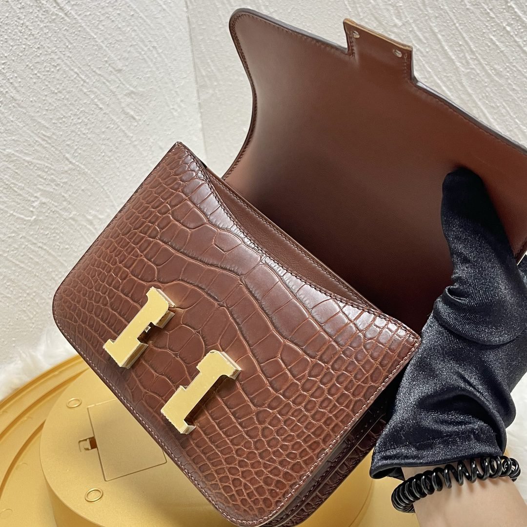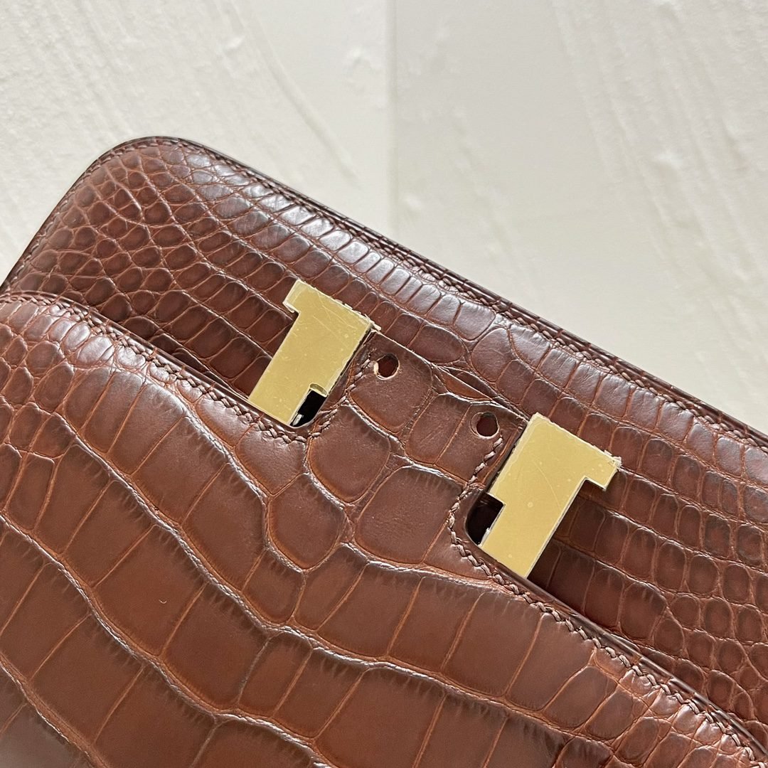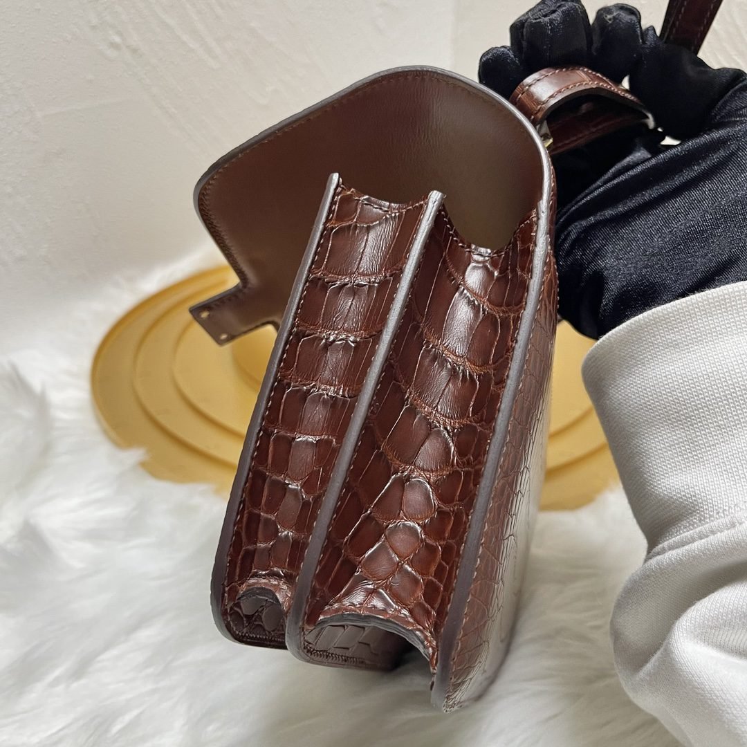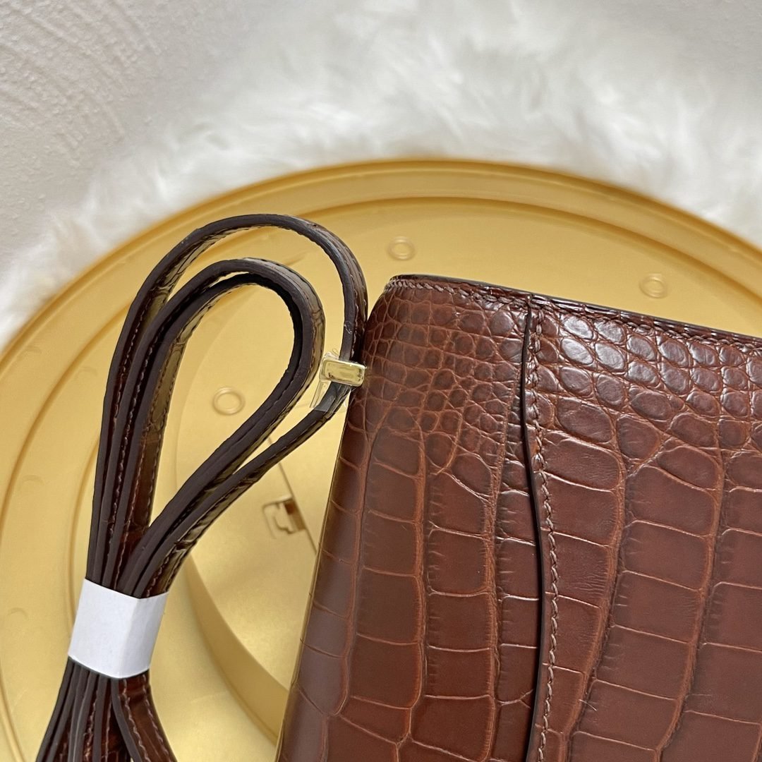 Home BAGS Top Crocodile Bags ✨✨Constance Flight Attendant 19cm✨✨✨Honey Brown ➕Matte Americas Water Dye Crocodile🐊 Gold Buckle very atmospheric color, sisters can be rushed🐛