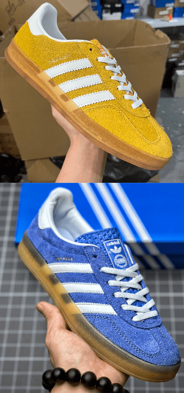 This Adidas Gazelle collection showcases the iconic silhouette in bold yellow and blue suede colorways, highlighted by signature white stripes and gum rubber soles. Rooted in retro athletic heritage and reimagined with contemporary flair, these sneakers blend timeless style with everyday wearability. Perfect for those who appreciate Adidas’ legacy of innovative design and vintage-inspired aesthetics, each pair is a testament to the Gazelle’s enduring status as a streetwear staple.