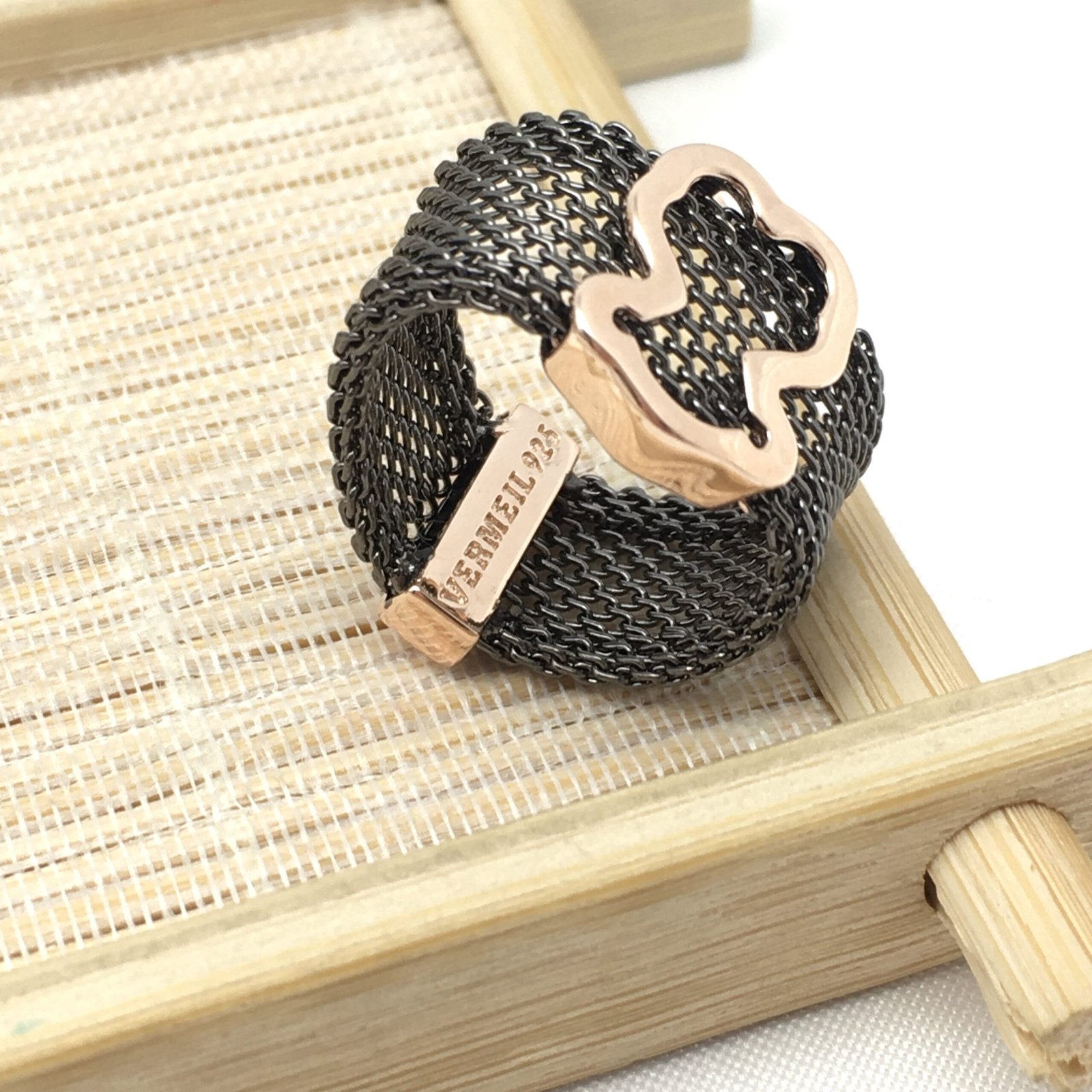 Be the first to review “Black IP Steel and Rose Vermeil Silver TOUS Icon Mesh Ring” Cancel reply