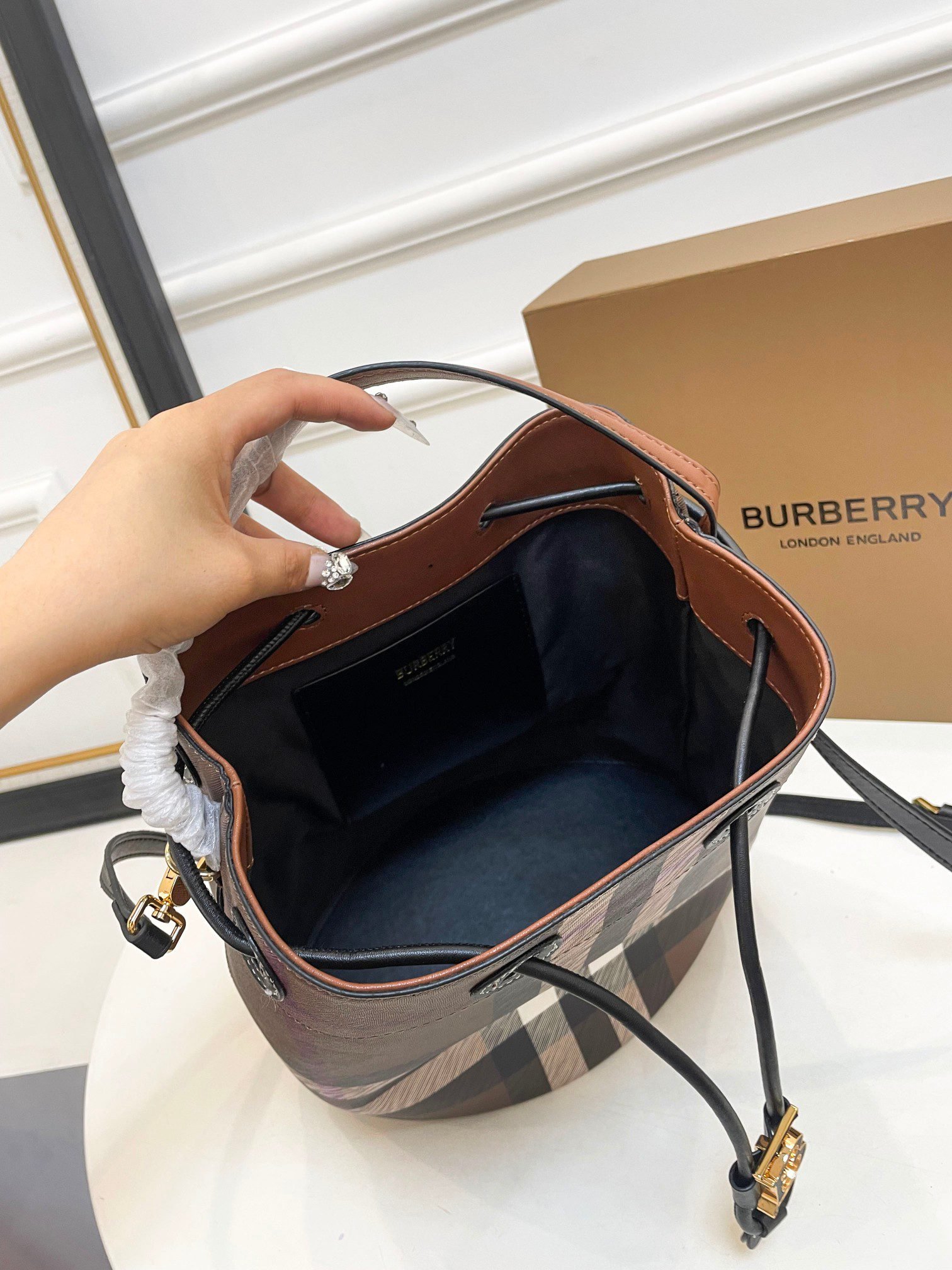 Burberry bucket bag fashion circle essentials Get up the new Burberry never worry about sales temperament placed there [strong] good quality! be sure to do the best, 😍😍 the original hardware size 26.28
