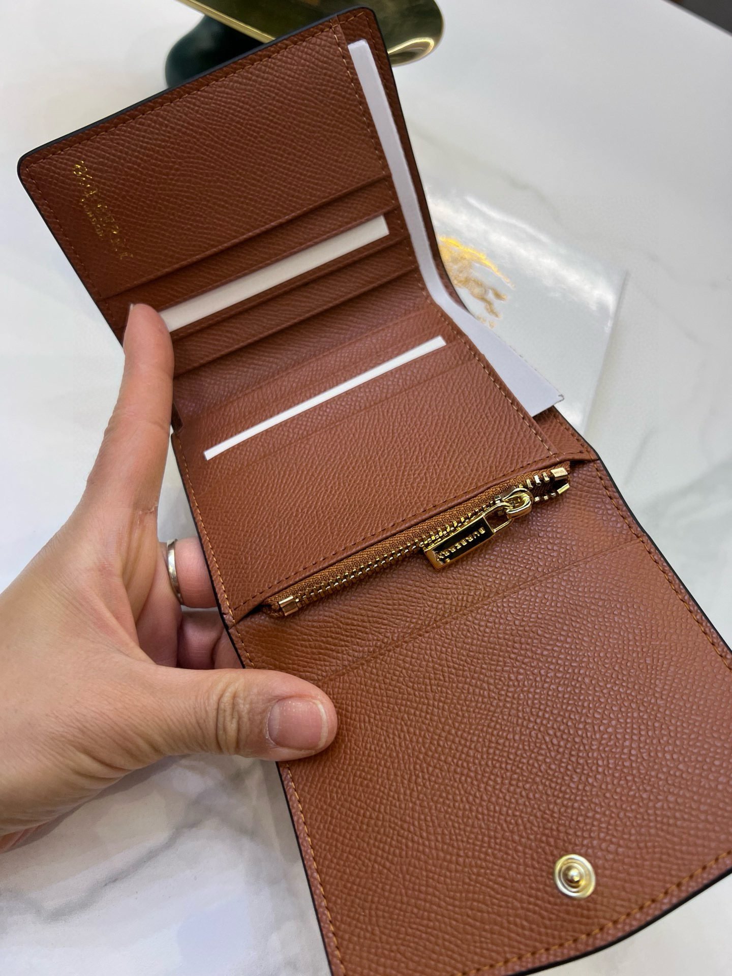 Burberry’s latest women’s wallet with three fold design