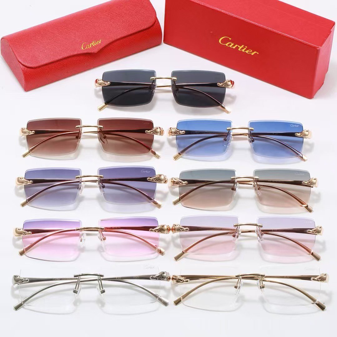 ✨ The Cartier Rimless Panthère Sunglasses feature a sleek rimless square design paired with iconic panther metallic accents on the temples, exuding a sense of luxury and sophistication, making them a standout piece to elevate the refinement of your look.