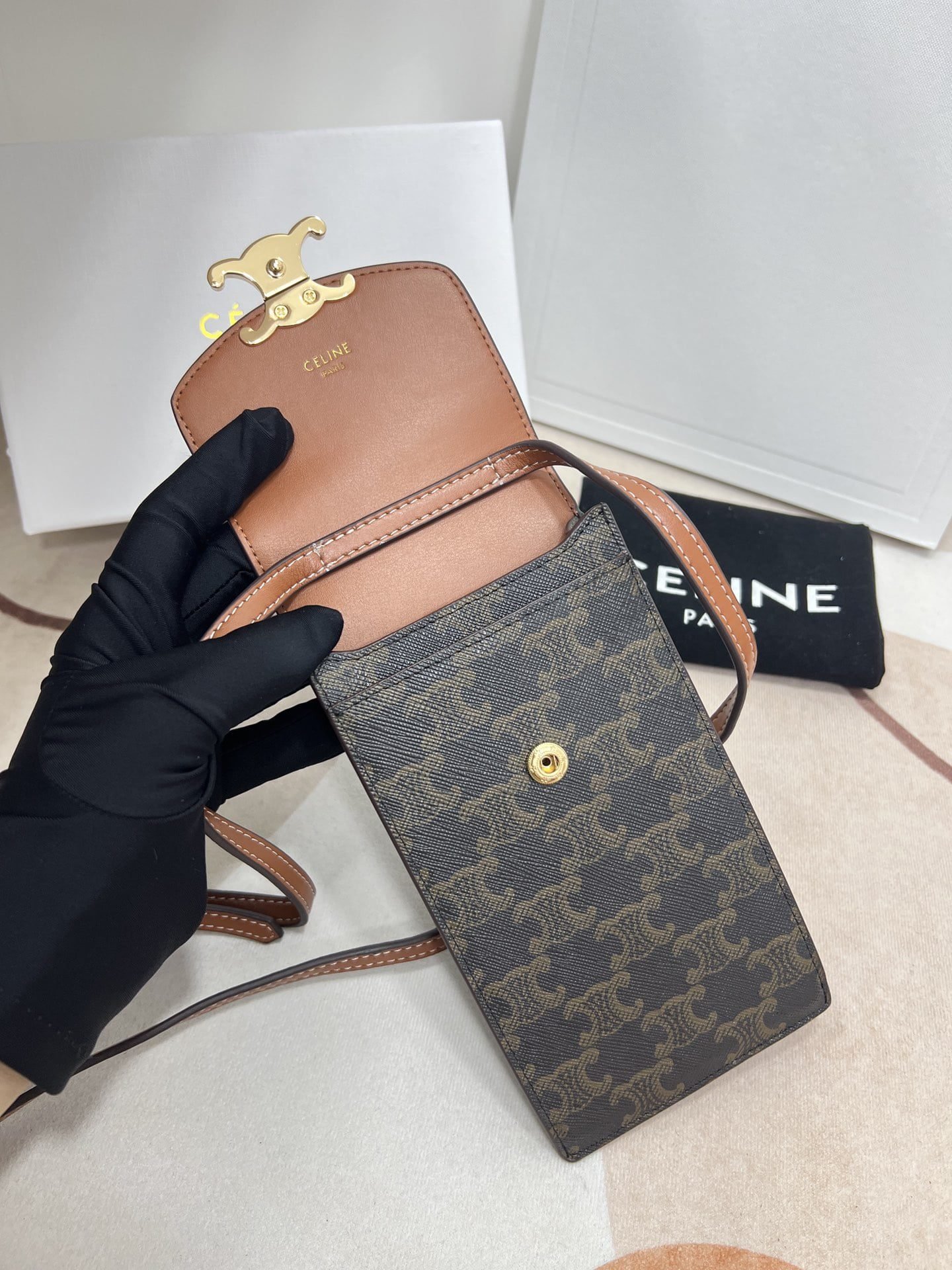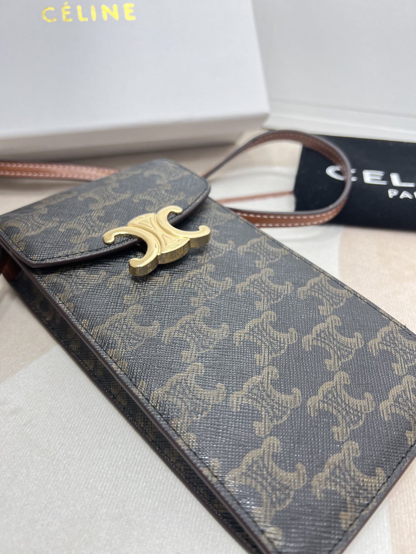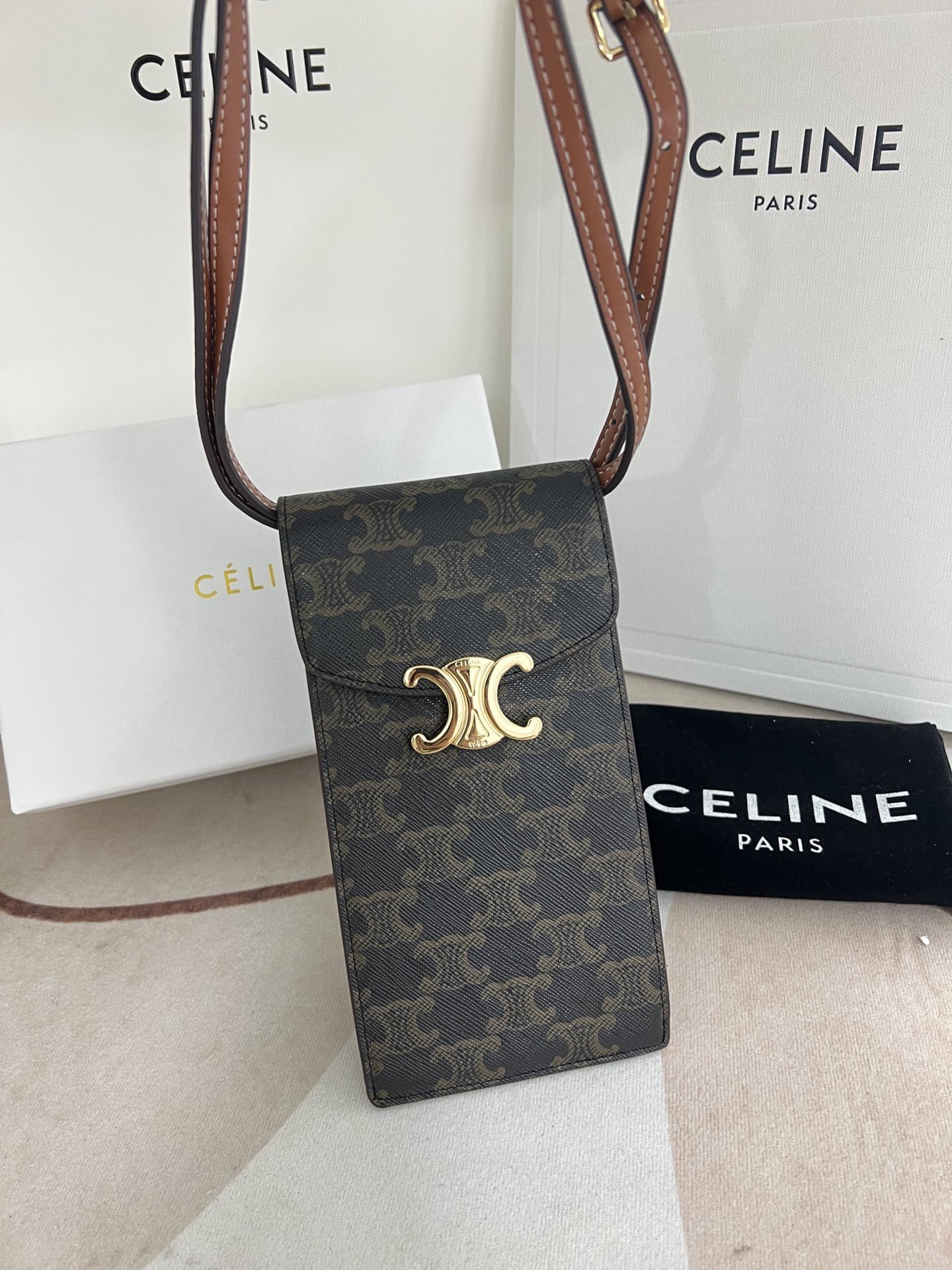 Arc de Triomphe mobile phone bag, classic presold fabric self weight is very light large Arc de Triomphe hardware logo embellishments, simple and unique C home wind