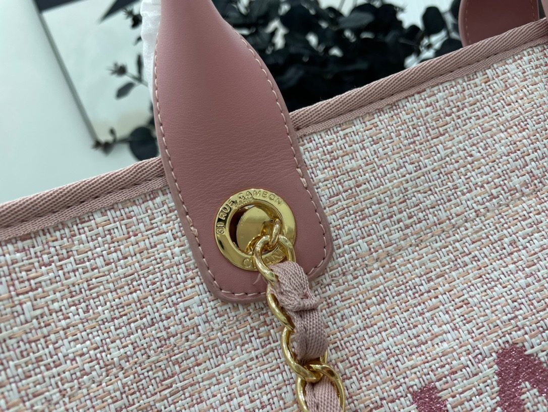 66941 Pink light Gold remember to bring her when you travel! chanel shopping bag spring and summer new color! The beach bag shopping bag is made of canvas material, simple and casual design is popular, and the capacity is large enough and light and fashionable suitable for daily use, more suitable for business travel and gentle leisure collocation, practicability is very high! Size: 38cm