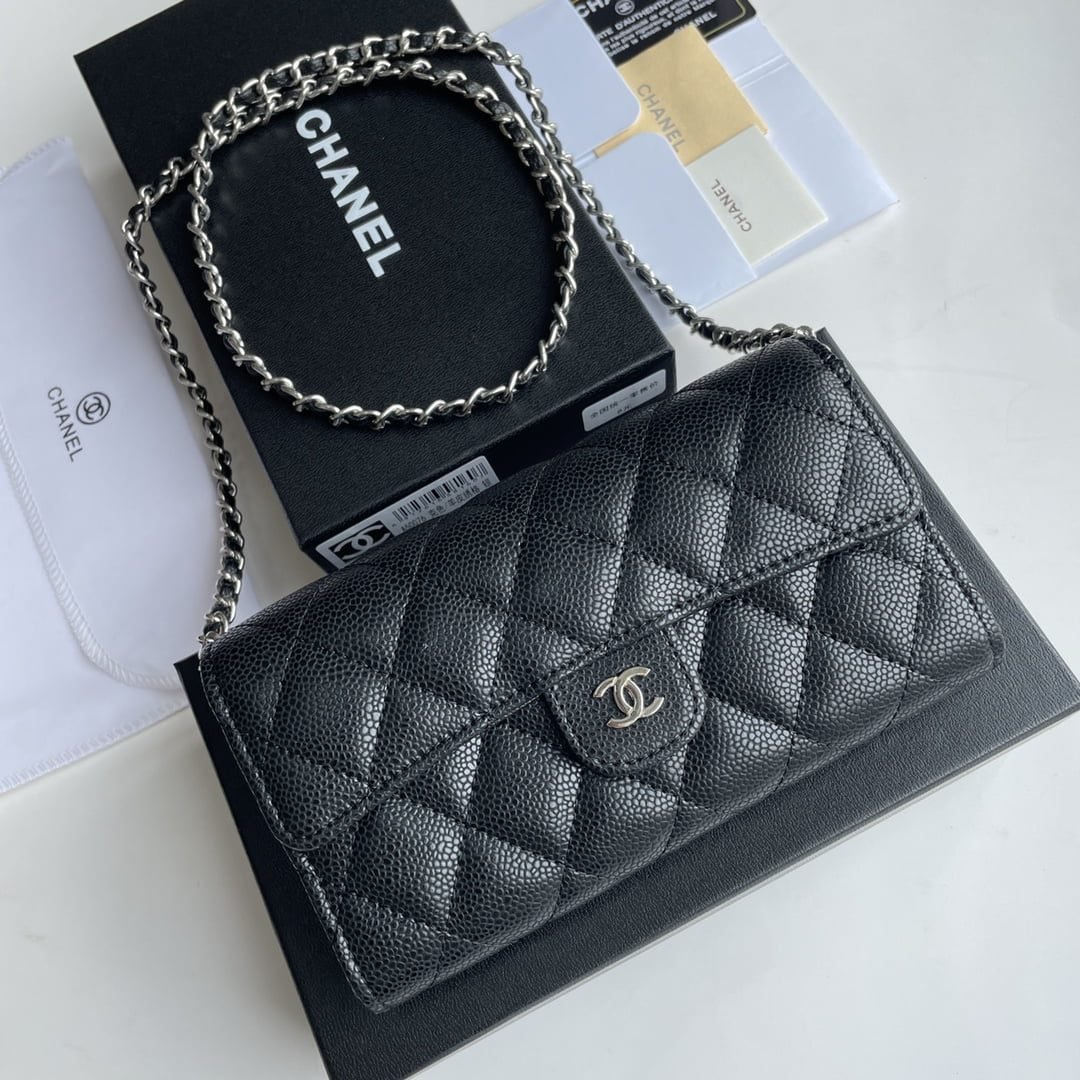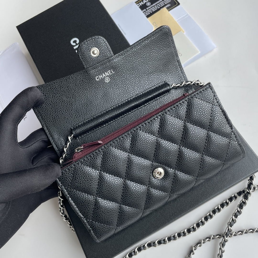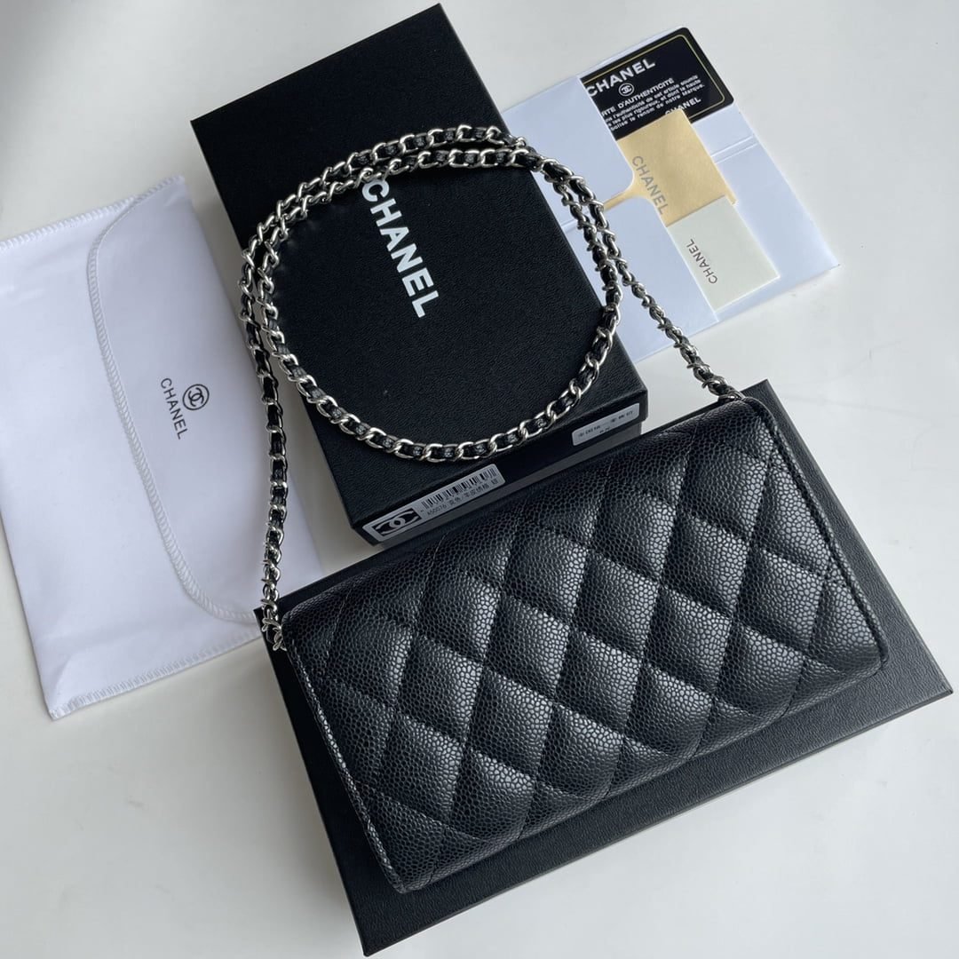 Home BAGS CHANEL-BAG Chanel chain crossbody bag Cowhide with diamond lattice caviar Sliver hardware Black A50076 size: 18*10.5*3.5cm