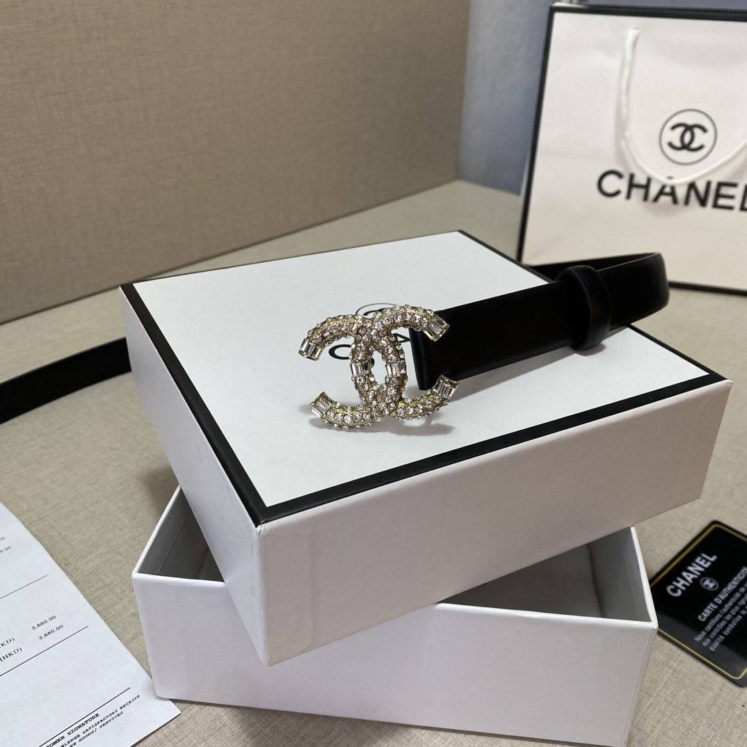 Home Belt CHANEL Belt Chanel Classic Double C Diamond Ring Buckle Black Belt Simple, Fashionable, Noble, Elegant