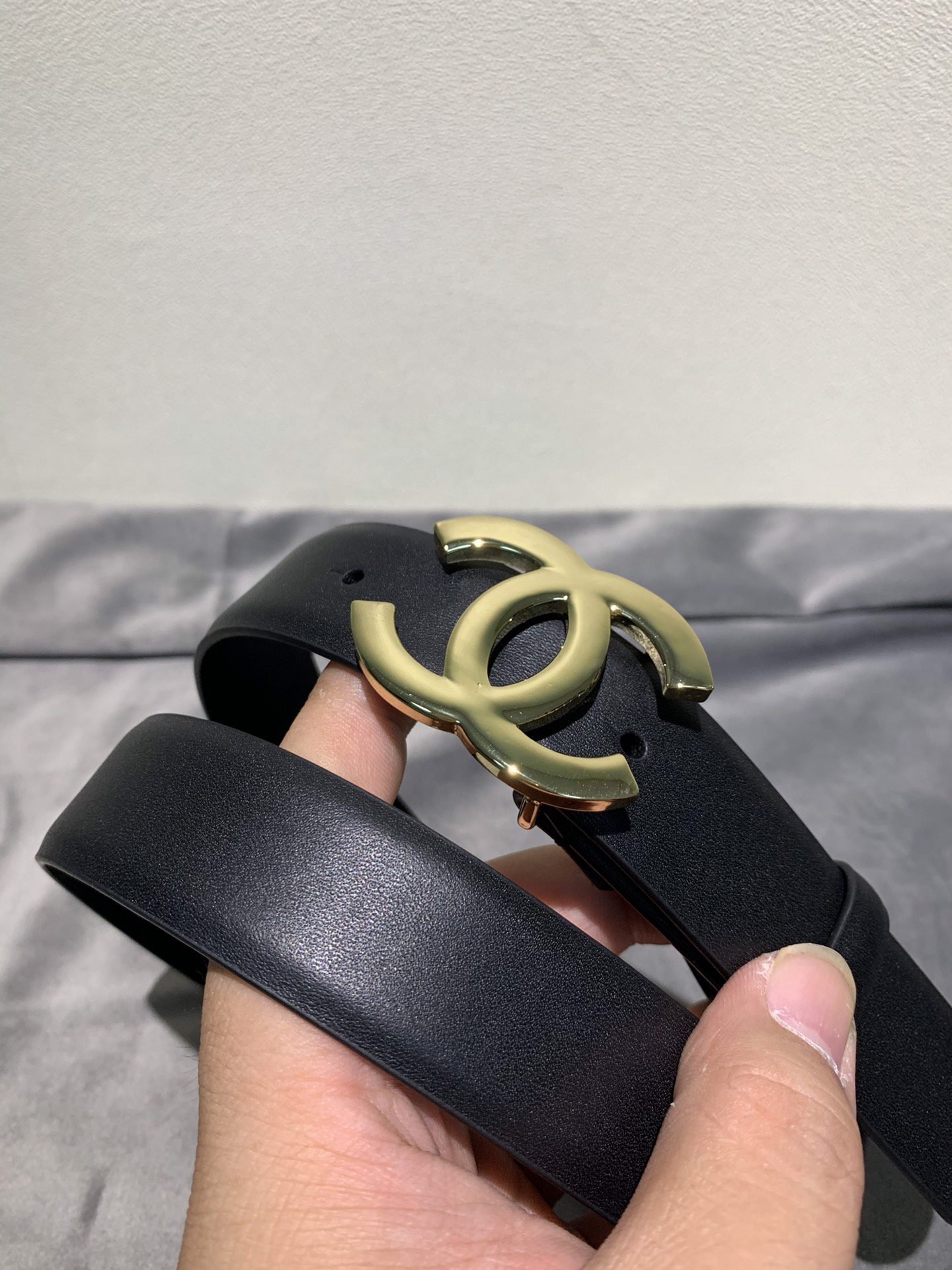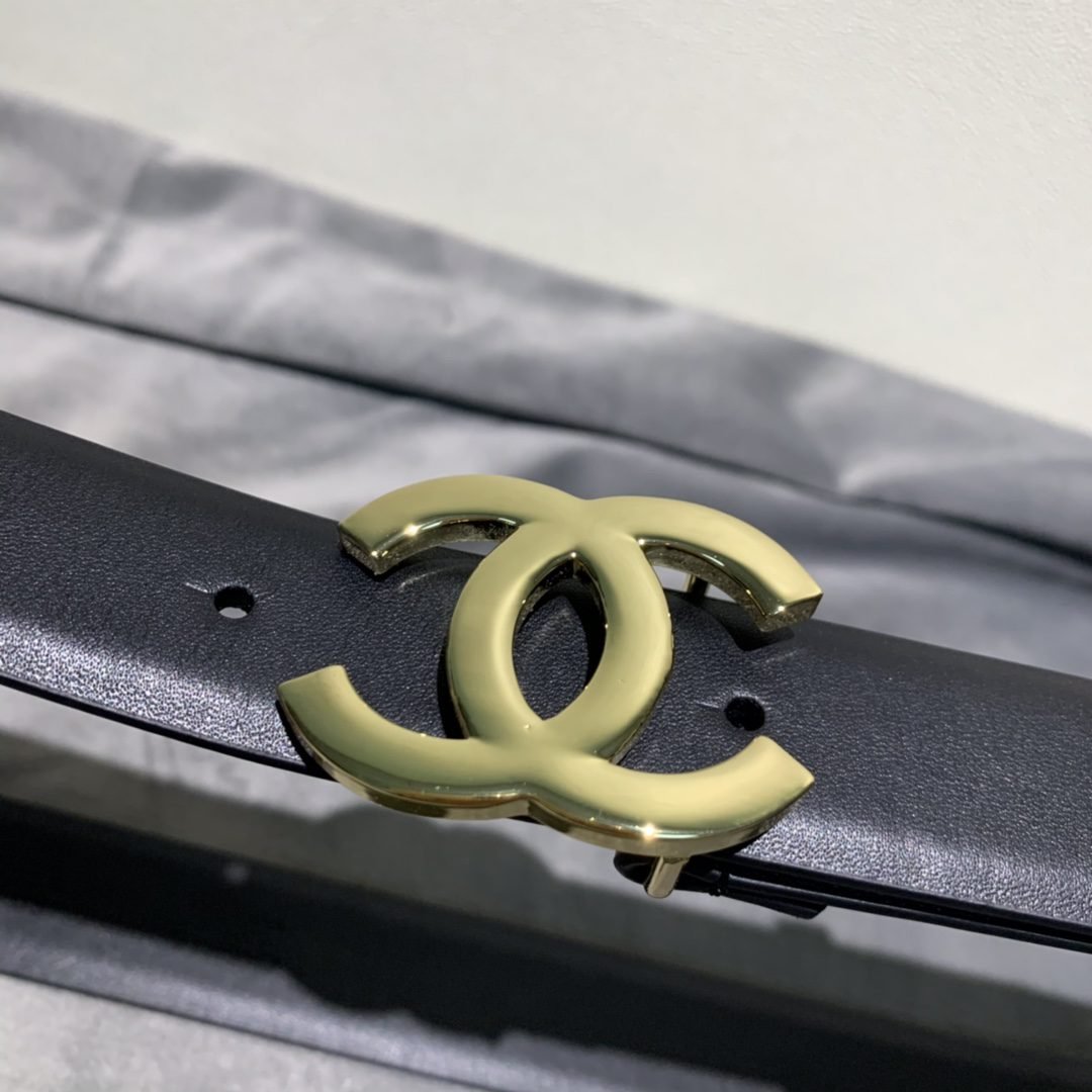Chanel gold double C texture buckle black belt, simple and elegant, low-key and luxurious
