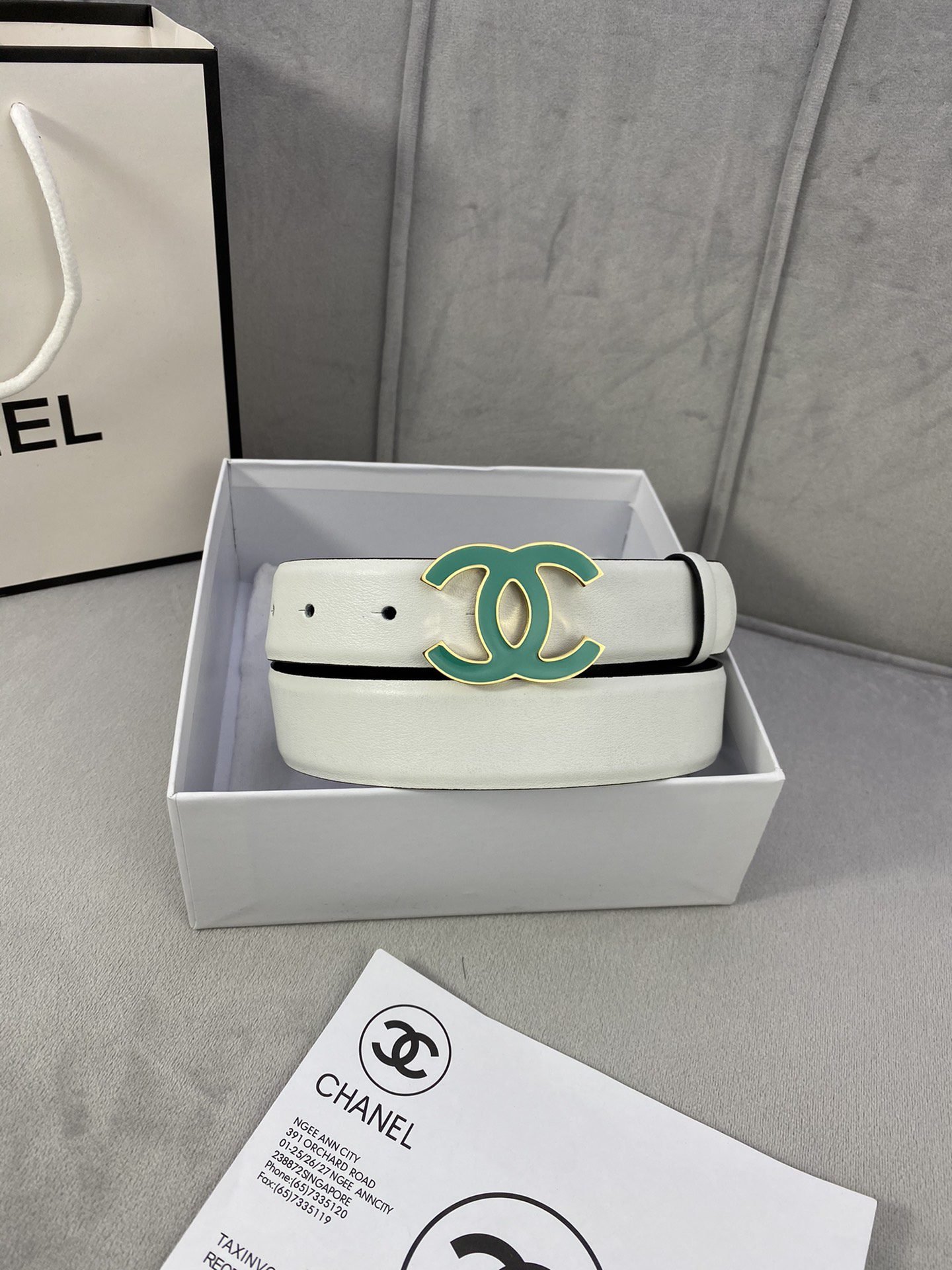 Chanel green double C-ring buckle red belt, simple, atmospheric, exquisite and elegant