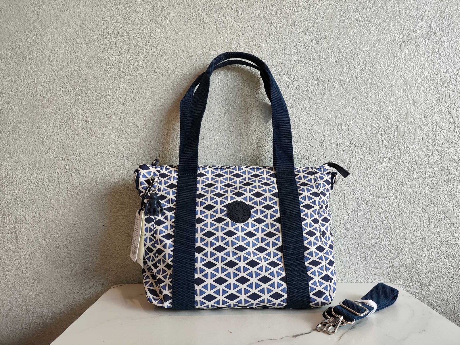 Diamond patterned printed kipling women’s lightweight canvas fashion trend casual shoulder bag tote bag