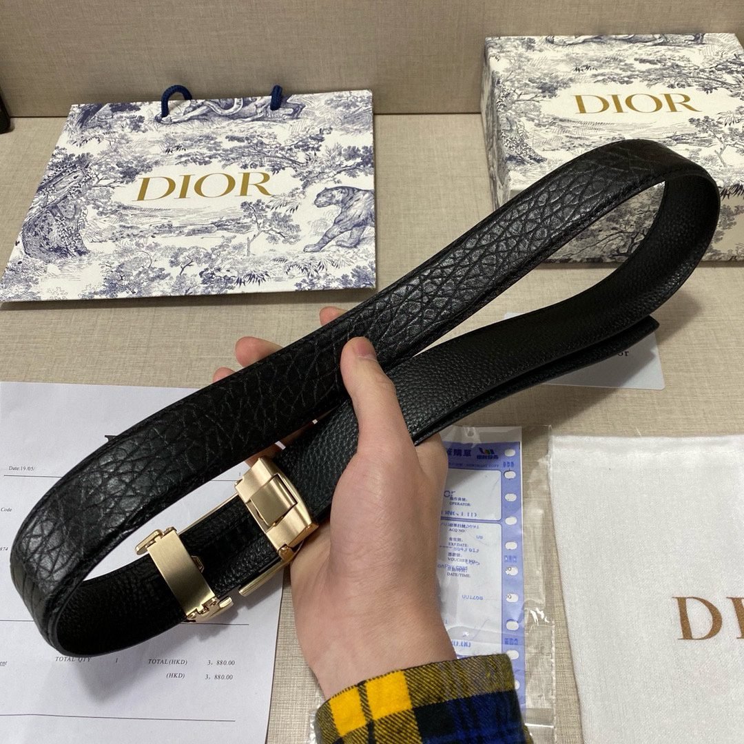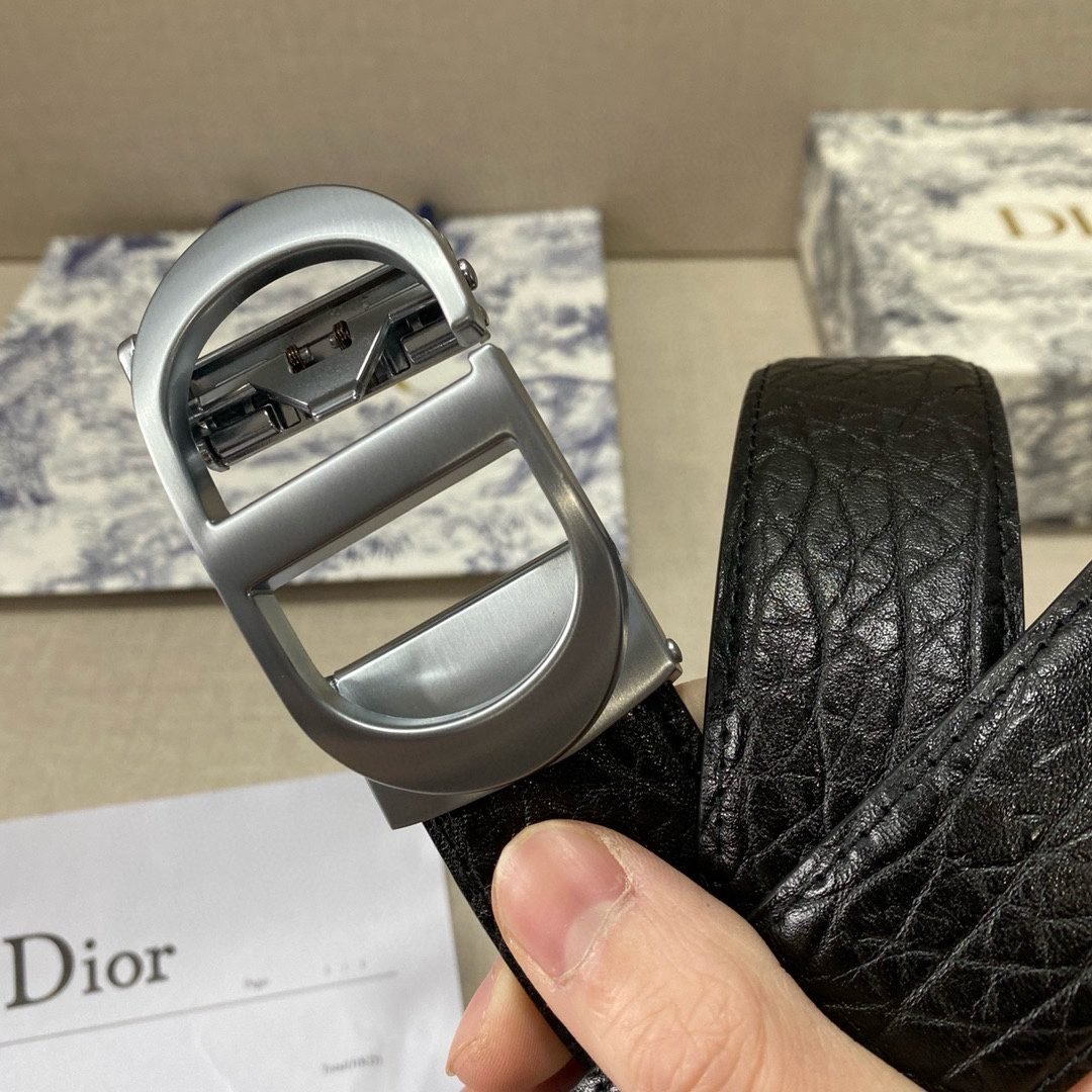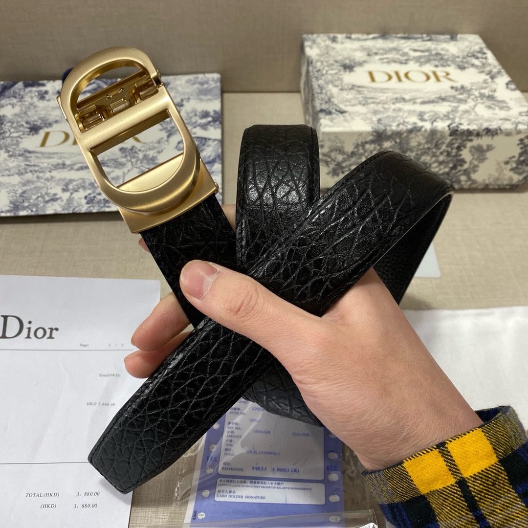 The Dior D-buckle black leather belt, with its excellent quality and exquisite craftsmanship, demonstrates unparalleled nobility and elegance. The belt is made of top-grade black leather, which is soft and elastic, with a delicate and smooth touch, showing an extraordinary texture. The golden buckle adopts exquisite polishing process, with smooth and rounded edges, exuding a charming metallic luster, which contrasts sharply with the black belt, highlighting a low-key luxury.