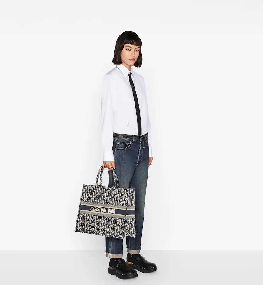 Introduced by Maria Grazia Chiuri, Creative Director of Christian Dior, the Dior Book Tote has become a staple of the Dior aesthetic. Designed to hold all the daily essentials, it is fully embroidered with the latte multicolor Dior Zodiac motif, a variation of the iconic pattern that incorporates Mr. Dior’s passion for astrology. Adorned with the Christian Dior Paris signature on the front, the large tote exemplifies the House’s signature savoir-faire and may be carried by hand or worn over the shoulder.