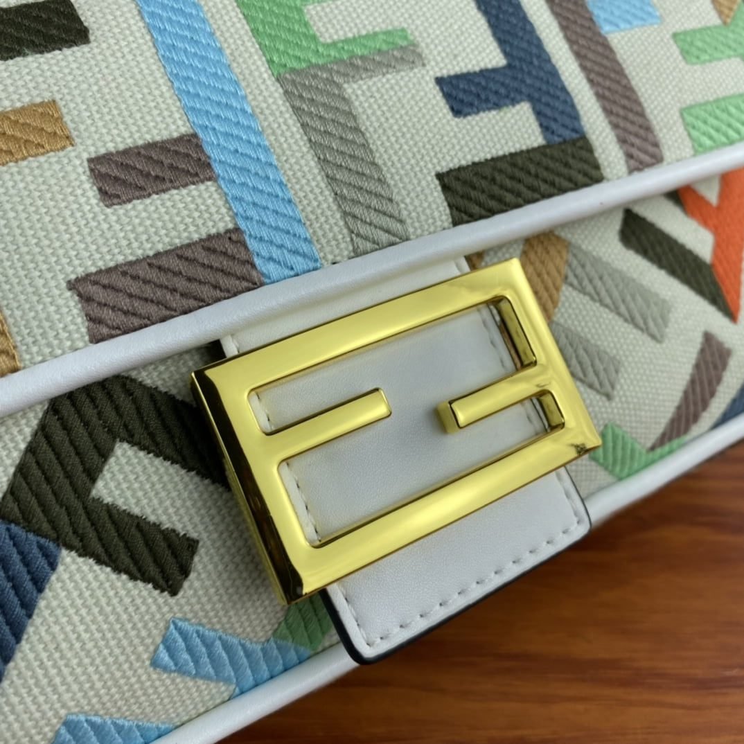 2023 Fendi’s latest baguette bag: very summery; Colorful rainbow 🌈F embroidery colors. This Fendi Baguette is sure to be a trendy item this summer! It looks great on the top; Attendance is also particularly high; It’s absolutely fine for a concave shape. Very lightweight. And its capacity is also very powerful; Easily meet your daily needs. With a short strap and a wide shoulder strap; Can be carried on one shoulder and crossbody. Very versatile. It’s easy to wear no matter what style you have. Carry it and you’ll be the brightest goddess in the crowd. Model F2029 Size 26-5-15CM