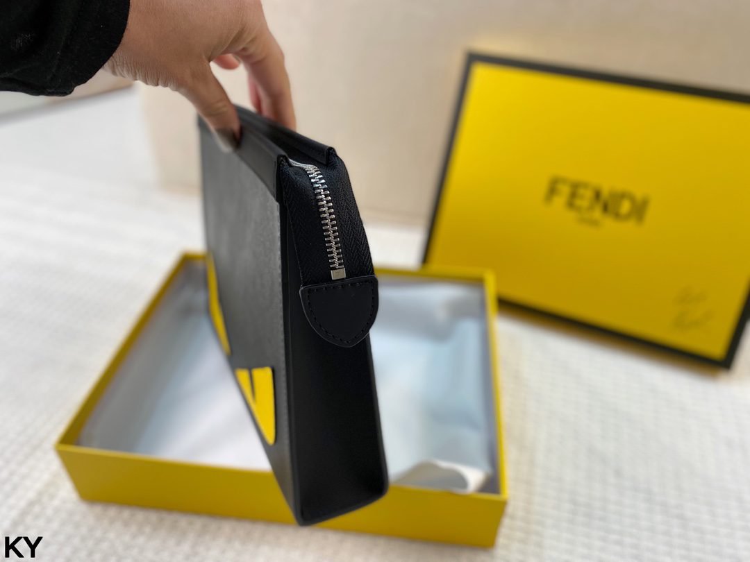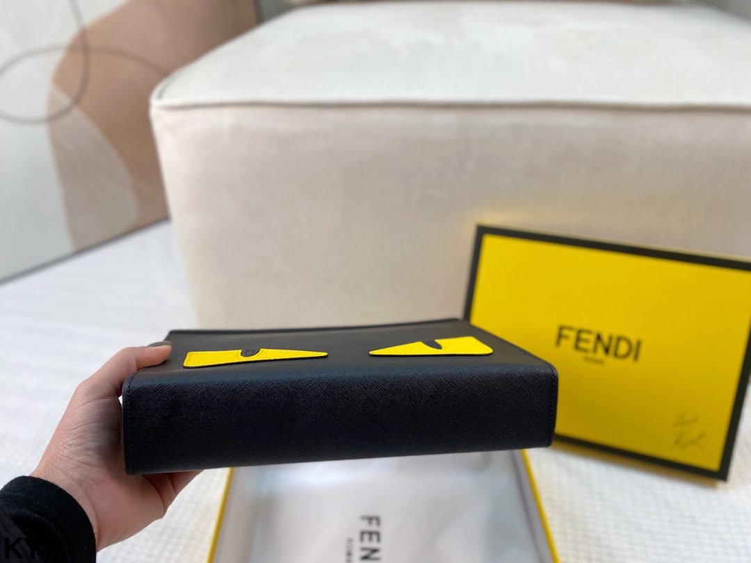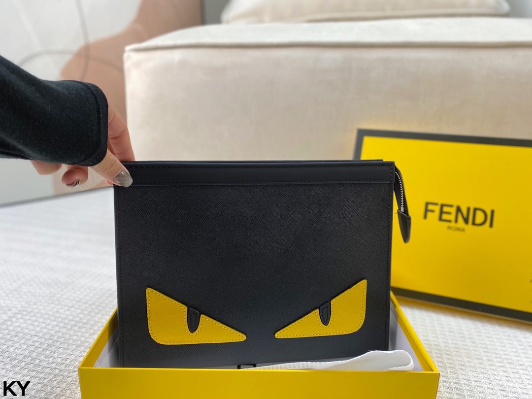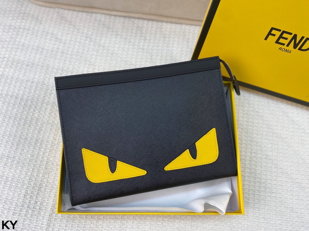This Fendi pouch features the iconic Monster Eyes design, crafted from premium leather, with a zip closure and a size of 26×20cm. Embodying Fendi’s legacy of whimsical luxury and meticulous craftsmanship, this pouch merges playful styling with practical organization. Perfect for those who appreciate a fusion of iconic branding, unique design elements, and everyday usability, it makes a sophisticated yet fun statement suitable for daily use or as a standout accessory.