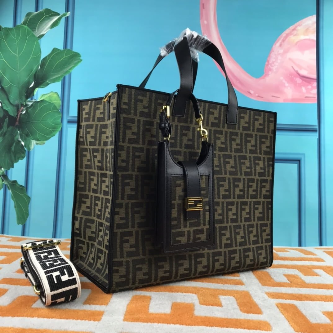 FENDI peekaboo Canvas Tote with mobile phone bag Black 2118 Size: 37*32 cm
