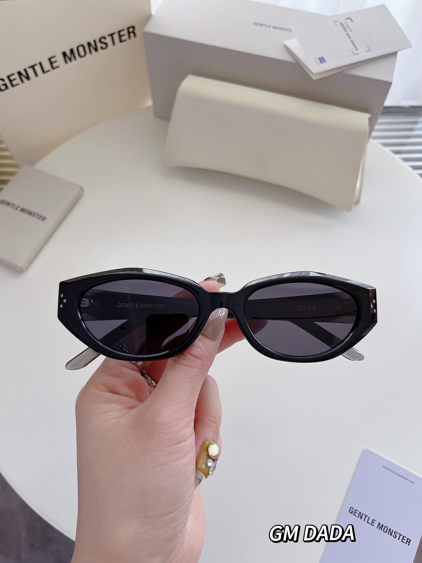 Elevate your style with Gentle Monster GM DADA Sunglasses. Featuring retro cat – eye frames and a sleek black design, these sunglasses effortlessly blend vintage charm with modern fashion. The dark lenses not only provide excellent sun protection but also add a touch of mystery and sophistication. Perfect for adding a trendy edge to any outfit, whether you’re out for a casual day or a special event. Paired with the brand’s elegant packaging, they’re a must – have accessory for fashion lovers.
