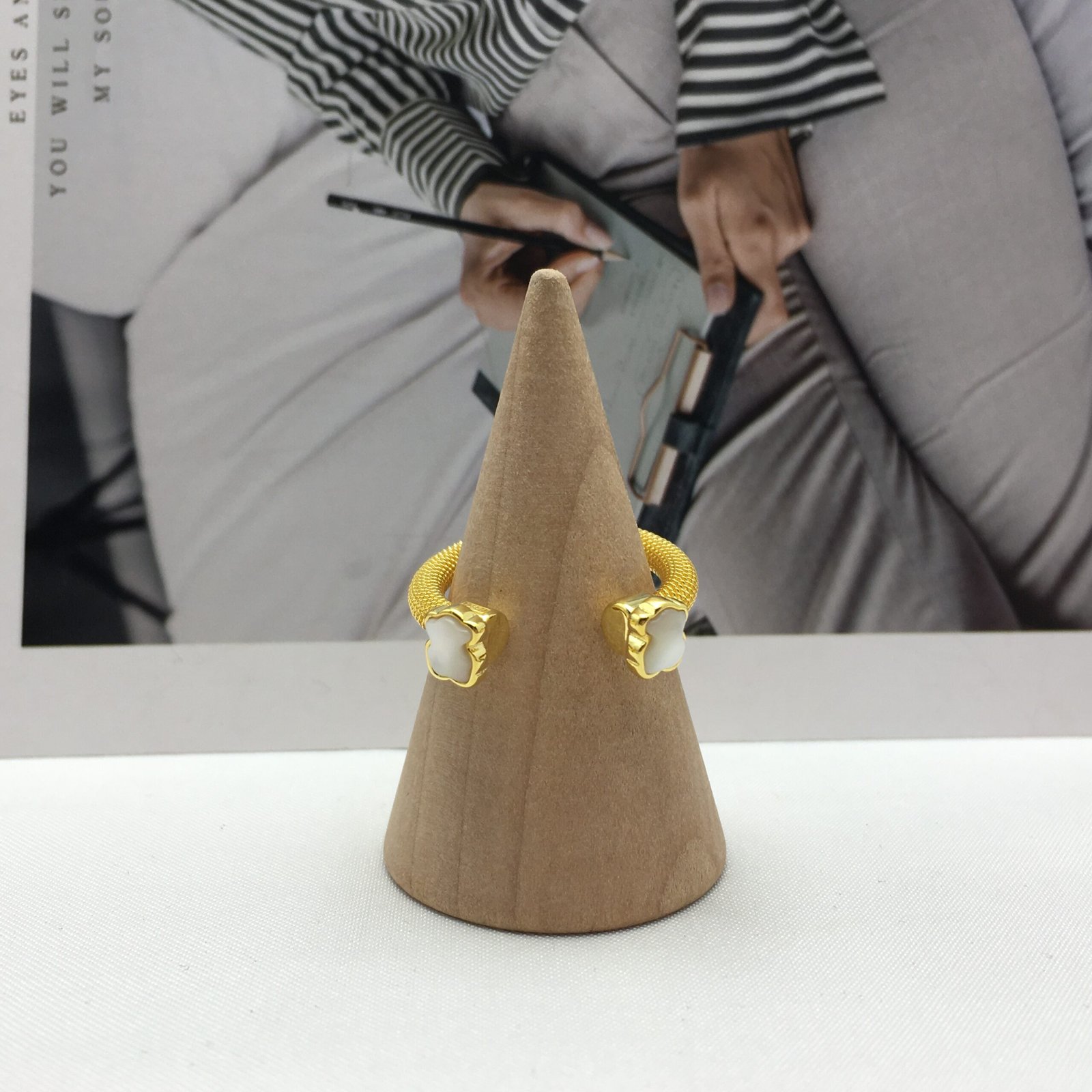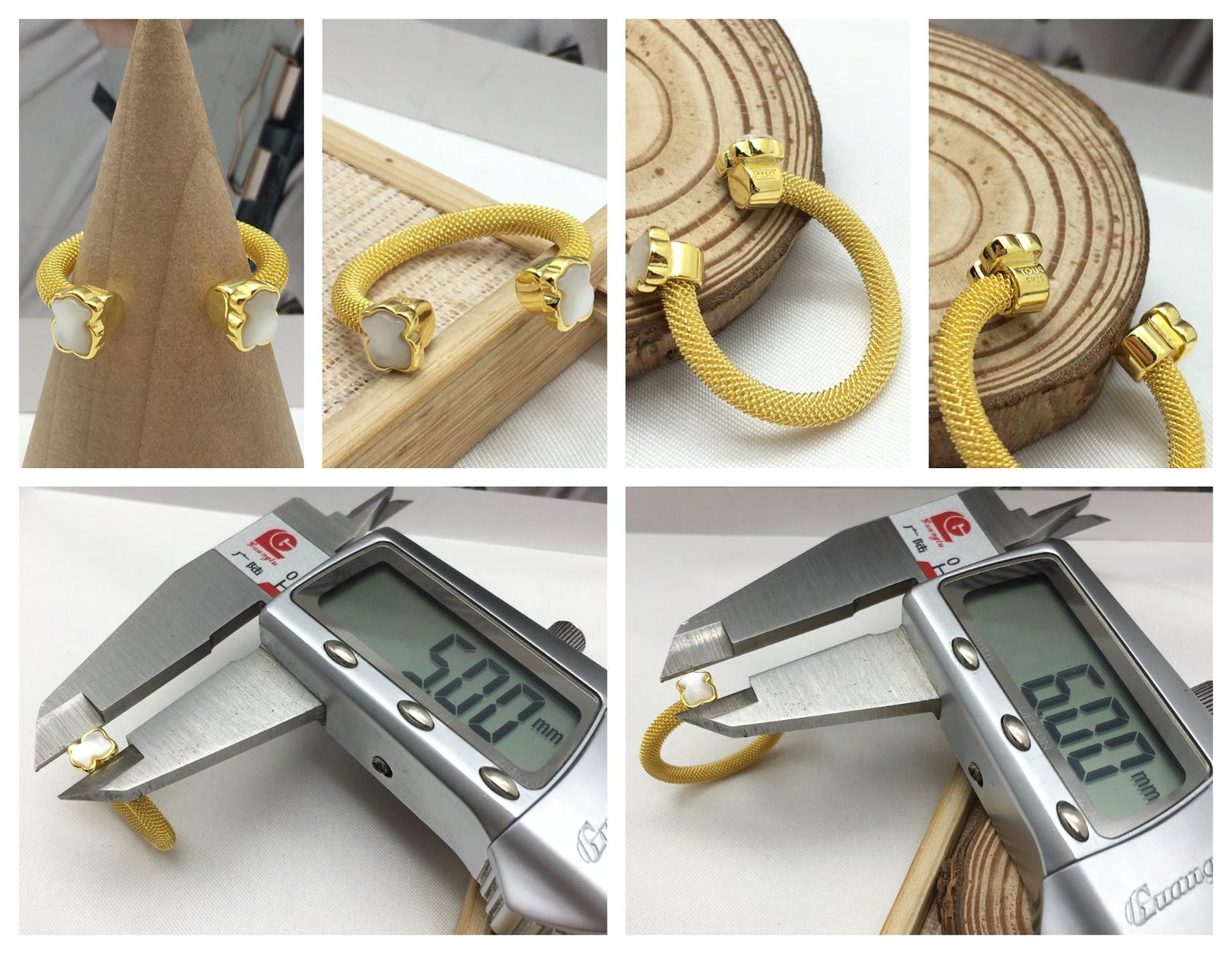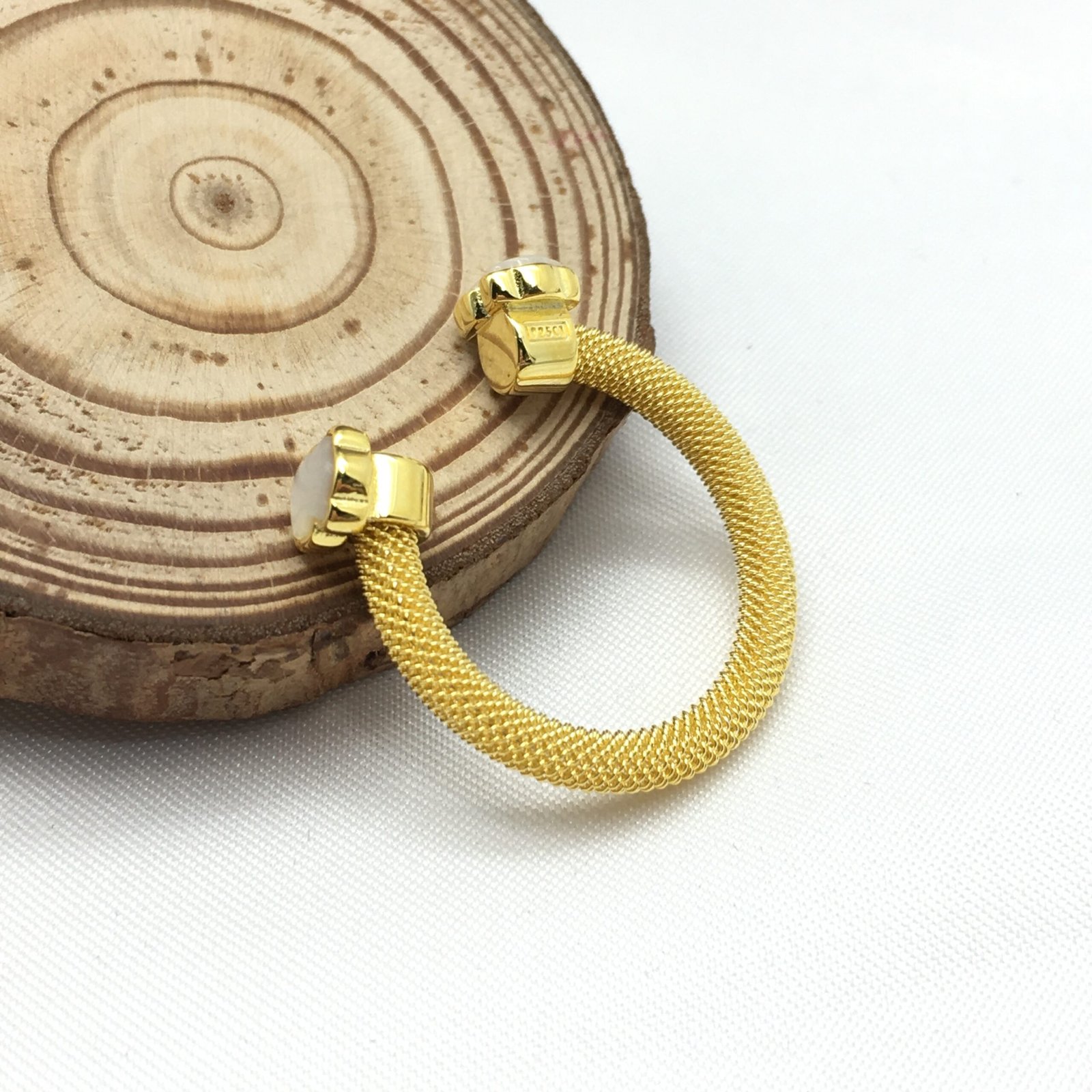 Be the first to review “Gold-colored IP Steel Mesh Color open Ring with Howlite” Cancel reply