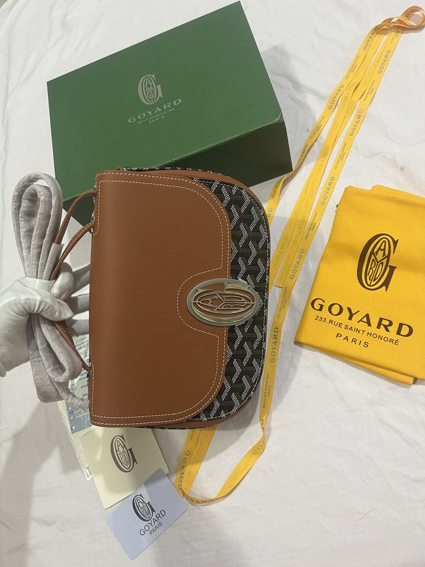 The GOYARD 233 lll retains the signature elements of the classic version, such as the bold metal logo buckle, full-sided leather flap and unique curved shape, while giving the bag a lighter streamlined design and a more modern contemporary style. Adjustable leather shoulder strap can subtly switch between elegant shoulder and fashion crossbody 🔄 retro elegance and popular sweet cool collision 💥 This series 233 named from the Paris century-old store address house number, is a classic book of goyard! Made of a full set of steel hardware 🔨Goyardine canvas stitching inside and outside the first layer of calfskin 🐂 Size: 26*18*8cm