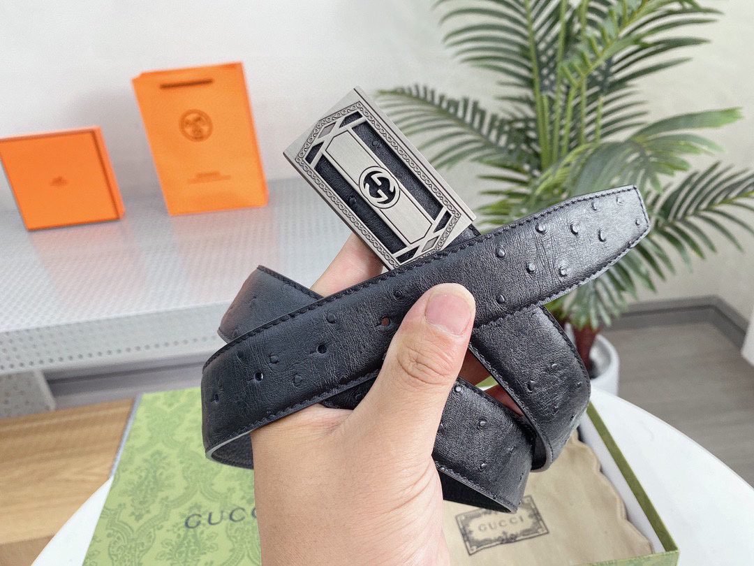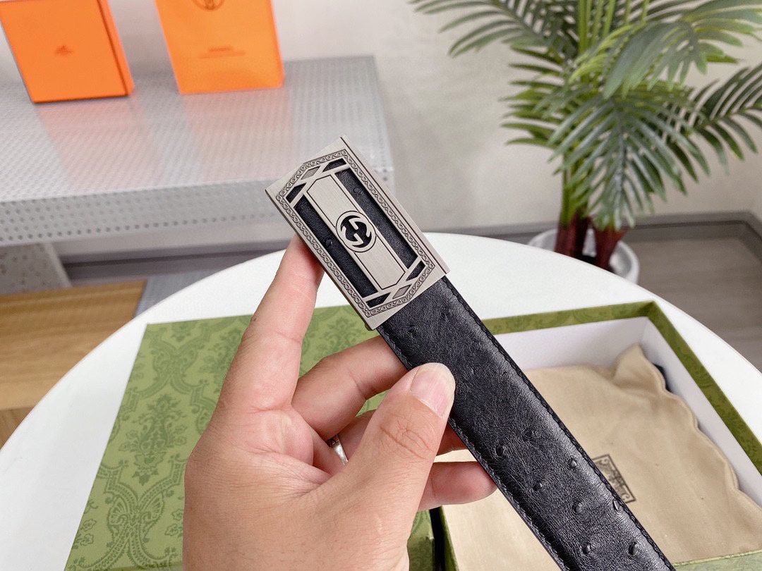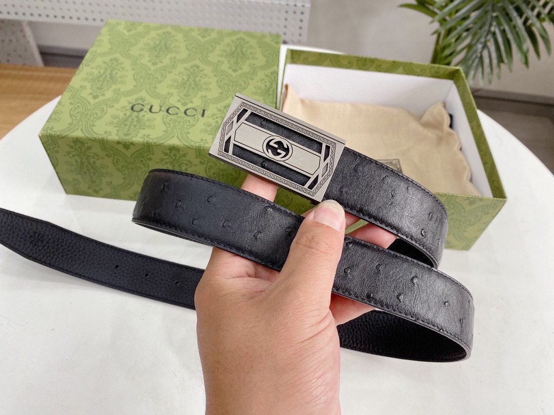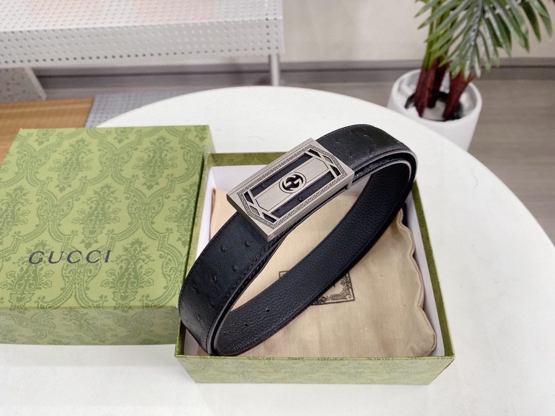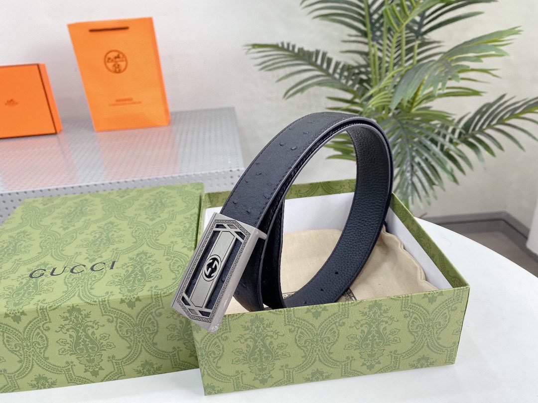 Gucci’s classic black silver buckle belt interprets the low-key luxury fashion concept with its timeless charm. It is made of top-quality leather materials and crafted with fine craftsmanship to present an elegant and wear-resistant texture. The silver buckle on the belt adopts the brand’s iconic design, which is simple yet exquisite, highlighting the wearer’s unique taste and personality.