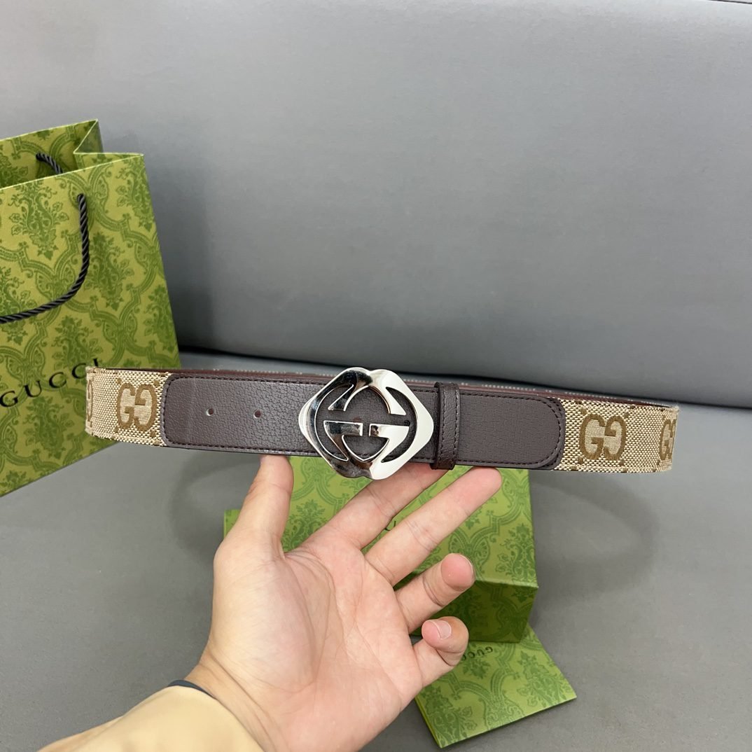 This GS G9 series belt demonstrates the perfect combination of fashion and taste. The belt is made of high-quality brown and beige interwoven design. The belt surface is delicate and smooth, and feels comfortable to the touch, showing a low-key and luxurious style. The double G logo on the belt is embellished with gold, which contrasts sharply with the color of the belt, highlighting the nobility and elegance of the brand.