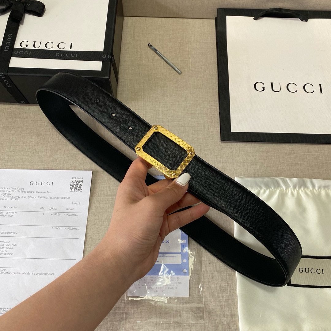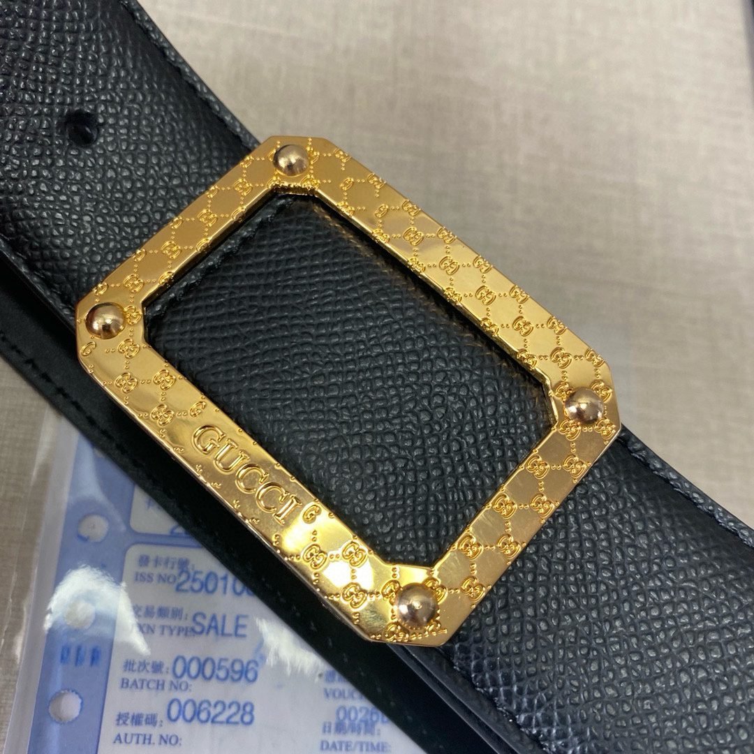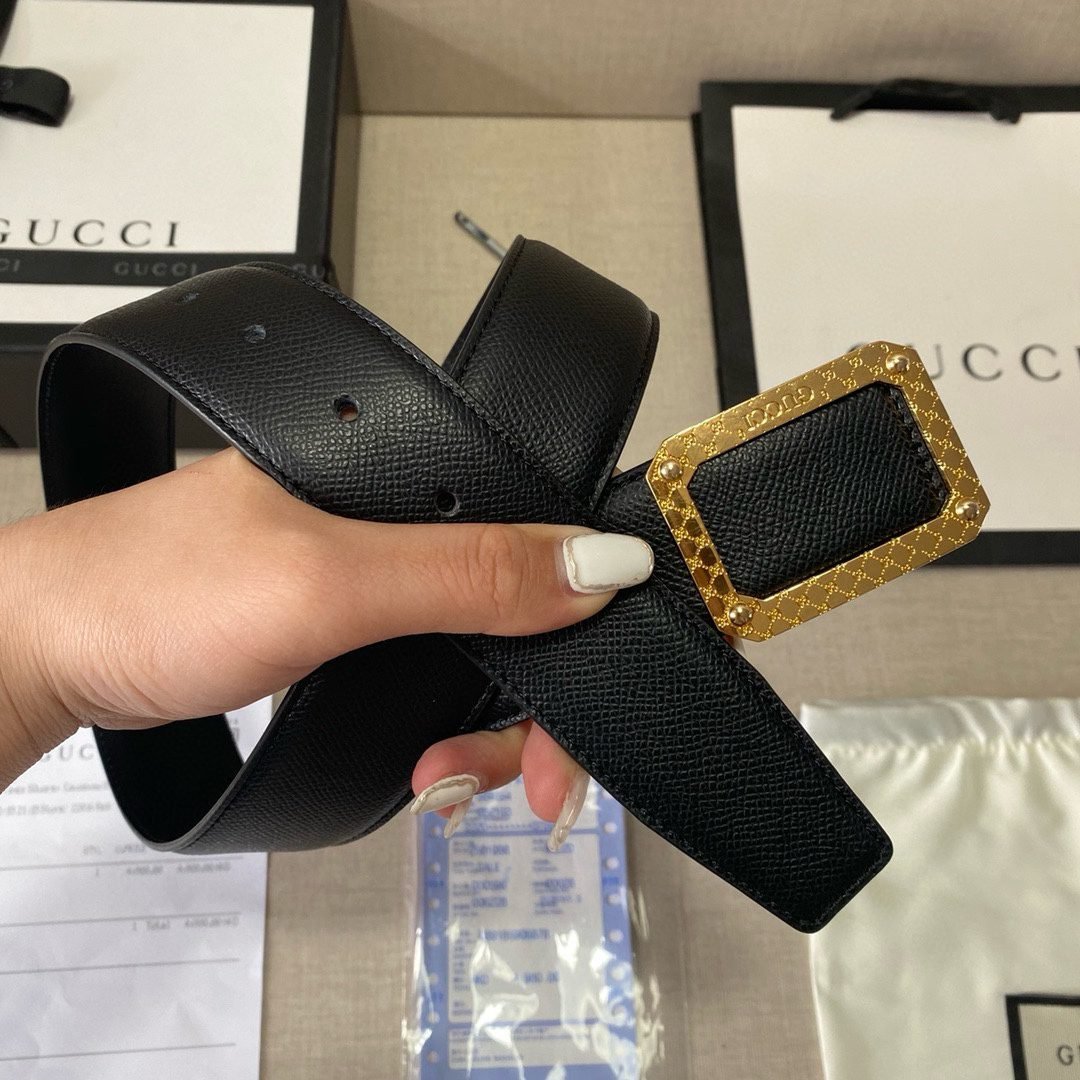 2.Unique design: The belt buckle is decorated with a metal square with the word “GUCCI” engraved on it, which not only shows the brand’s identity but also adds a sense of fashion.