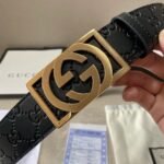 GUCCI double G textured black belt leads the fashion trend with its unique charm. Selected high-quality leather, processed with exquisite craftsmanship, the belt surface presents a delicate texture, soft and comfortable to the touch. The double G logo buckle is made of high-grade alloy material, finely polished and polished, shining with luster, showing nobility and luxury. The belt buckle is cleverly designed and can be easily adjusted according to the waist circumference to ensure comfort and convenience of wearing.