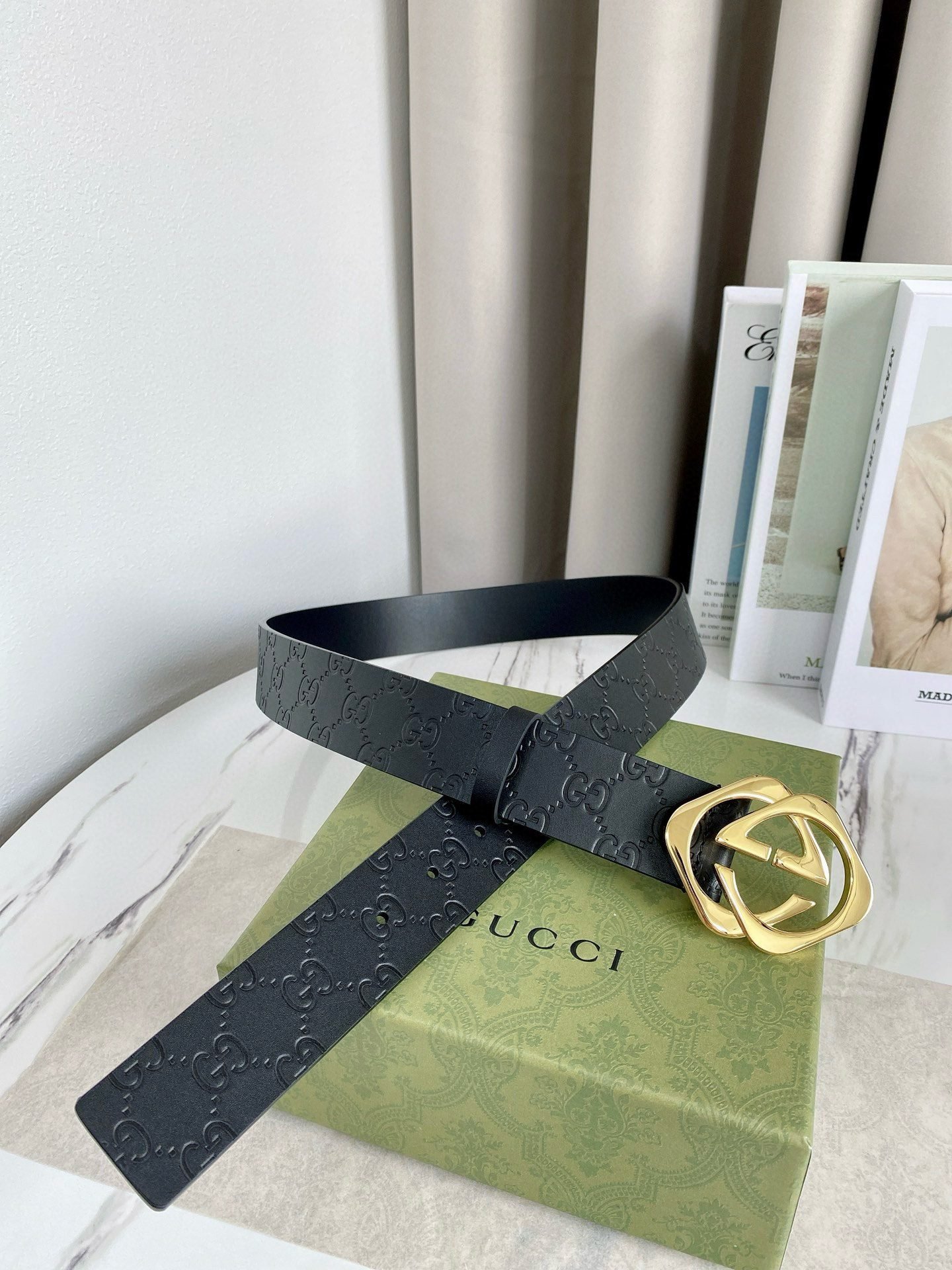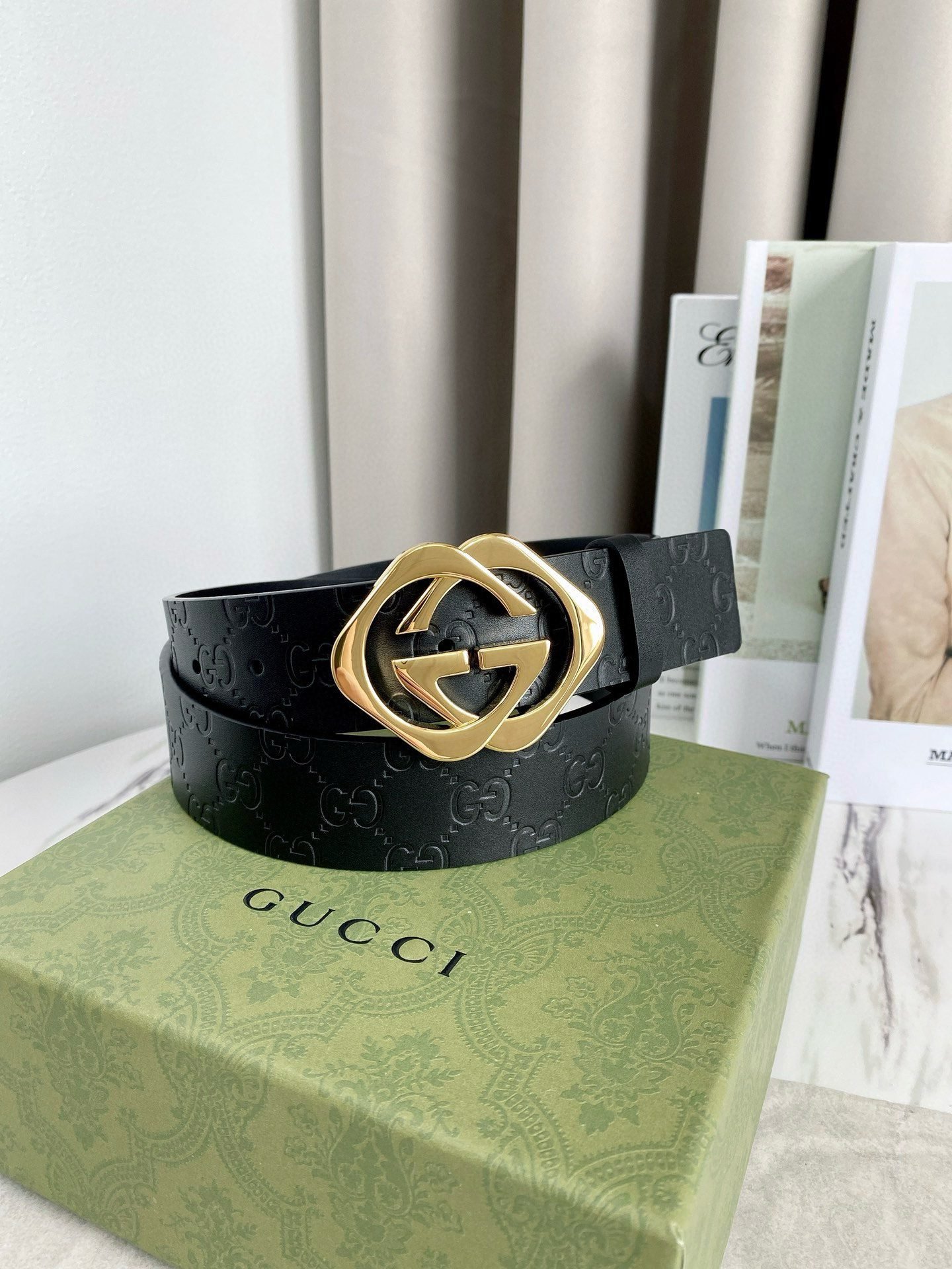 This Gucci double G logo fashionable men’s belt, with its unique double G logo buckle design, highlights the brand’s unparalleled charm. The belt is made of high-quality leather, which is soft and delicate to the touch, while also having excellent durability. The golden double G logo on the buckle adopts a fine polishing process, which is shining and highlights the wearer’s unique taste and identity.