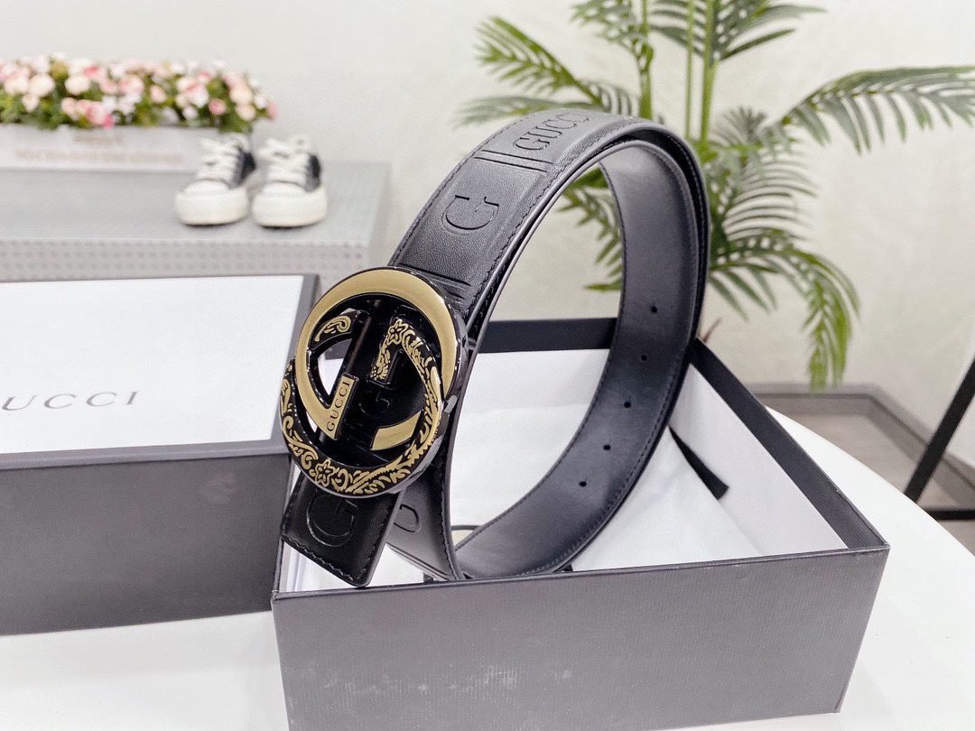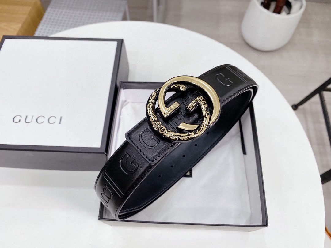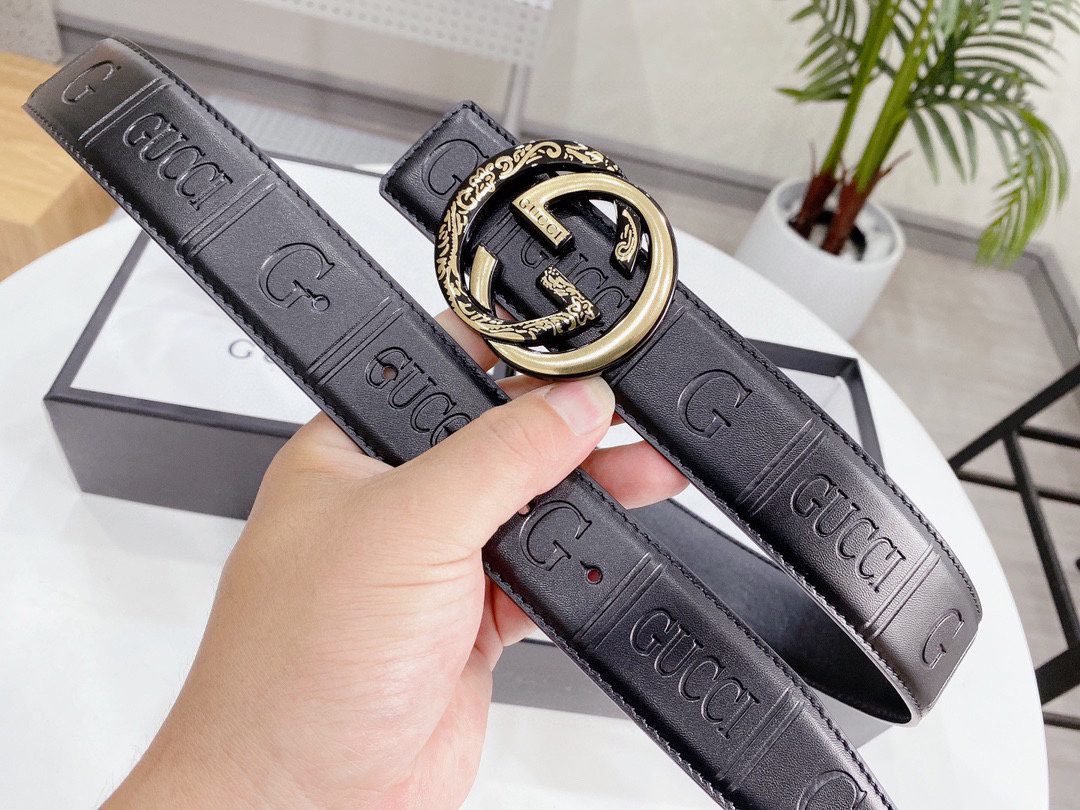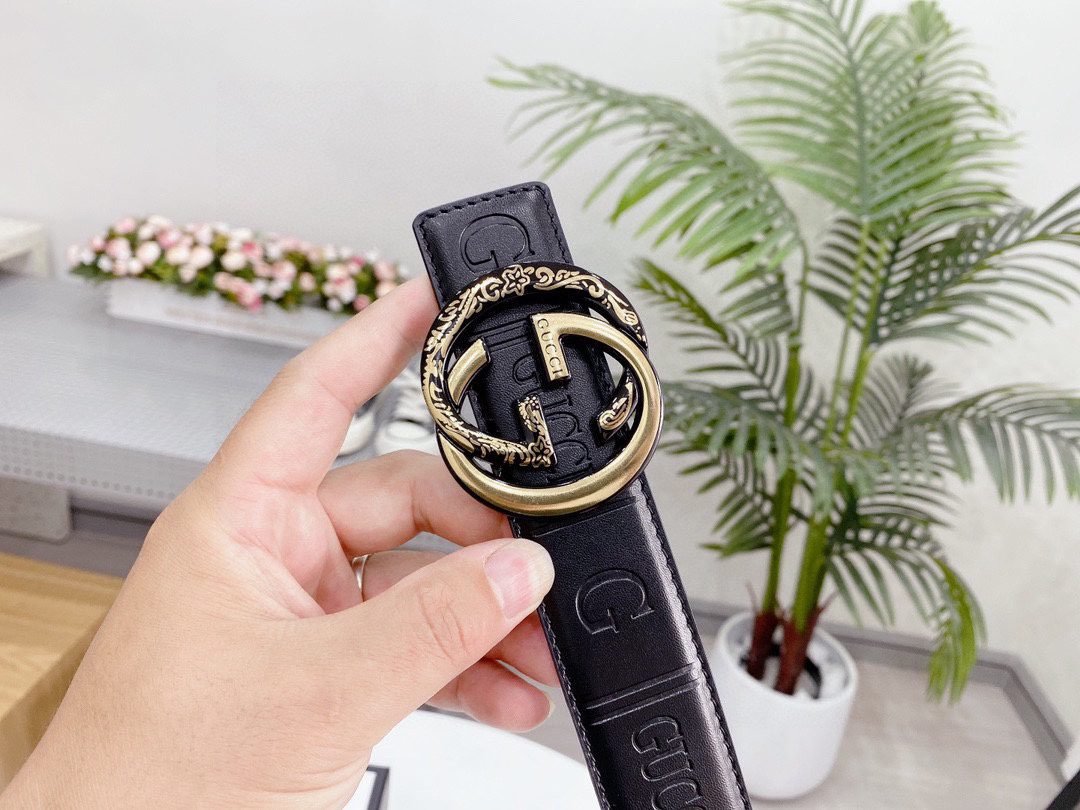 Home Belt GUCCI Belt Gucci gold snake buckle black textured belt, simple and elegant, delicate texture, soft and comfortable touch