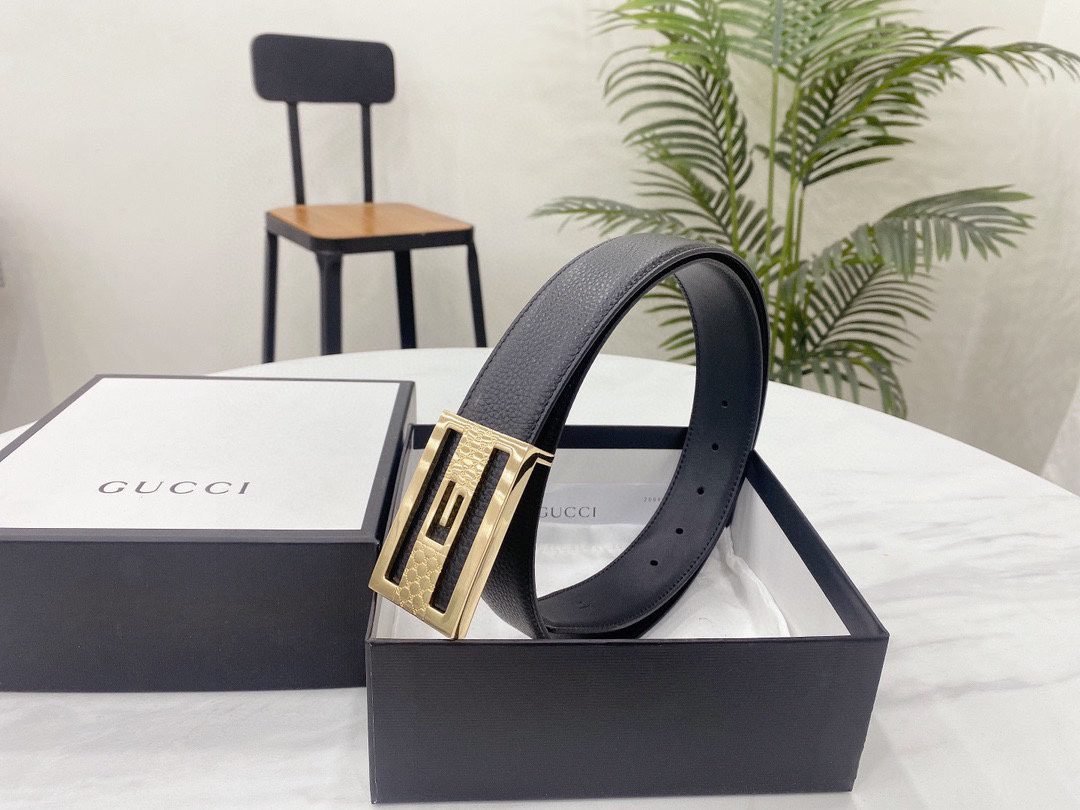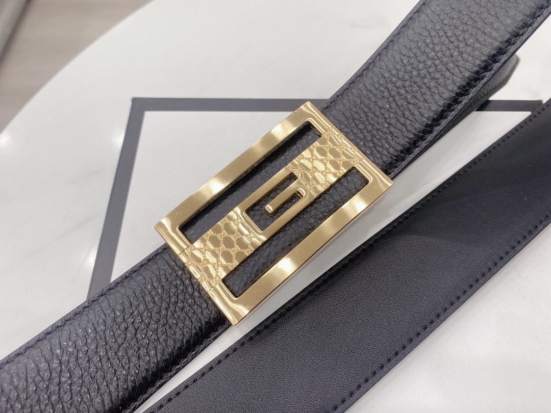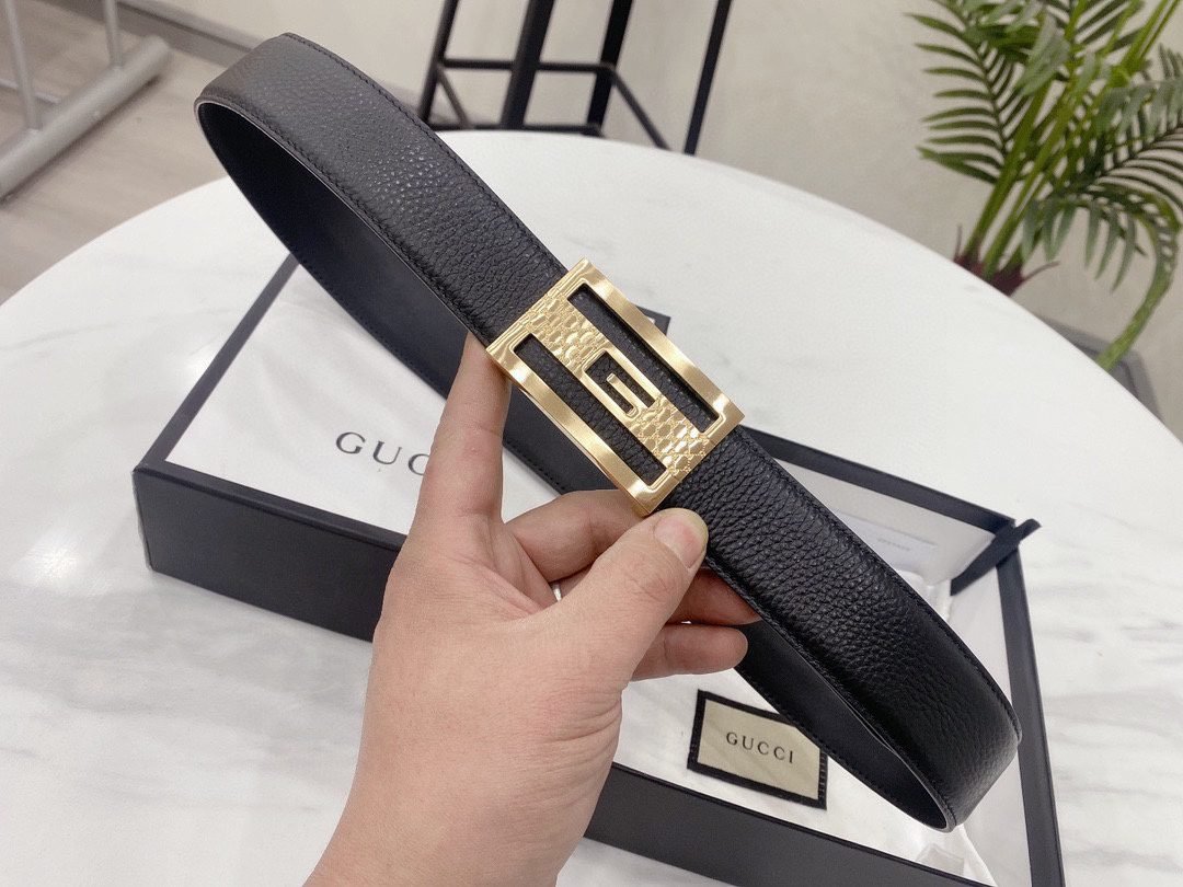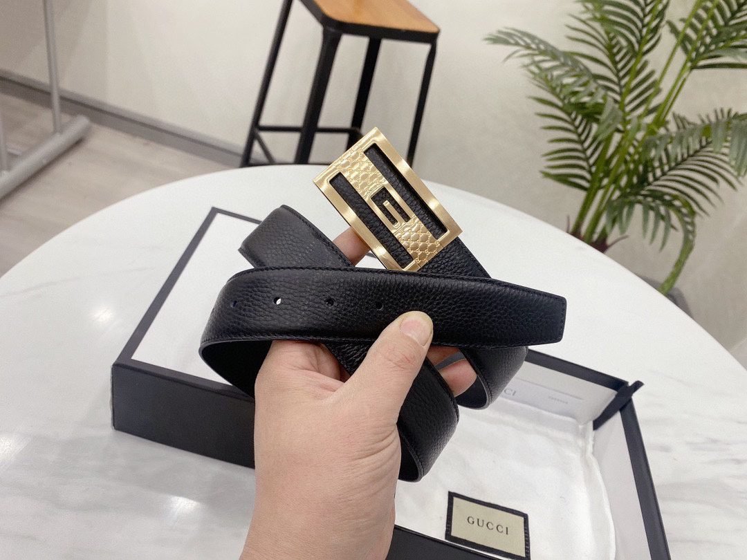 Home Belt GUCCI Belt Gucci high-end square buckle black striped belt, simple and elegant, elegant and luxurious