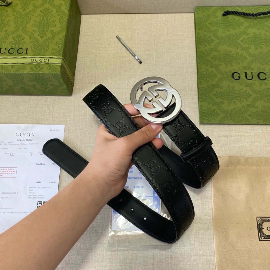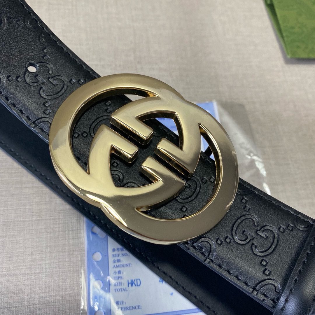 Gucci’s luxurious double G buckle black textured belt is marked by a unique double G design, highlighting nobility and taste. Selected high-quality black leather, after exquisite craftsmanship, presents a delicate texture and luster, soft and comfortable to the touch. The gold and silver double G buckle, as the symbol of the brand, has been finely polished and has a dazzling luster, highlighting luxury and extraordinary. The belt buckle is tight and easy to adjust, ensuring comfort and stability when worn.