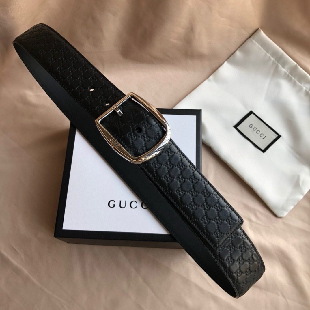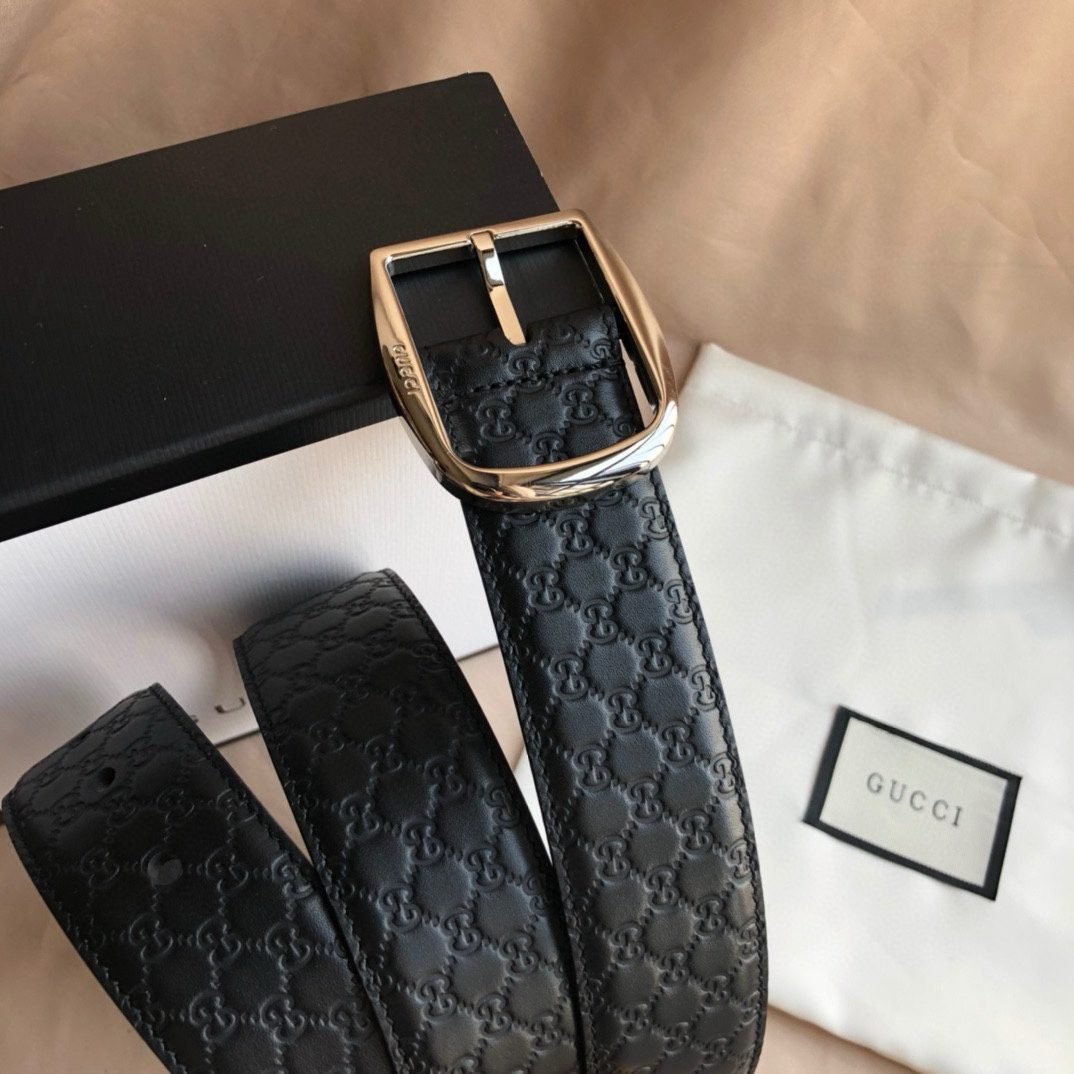 The Gucci silver square buckle black textured belt is made of high-quality leather materials and crafted with exquisite craftsmanship. Every inch reveals unparalleled texture and quality. The unique texture design not only adds to the fashion sense of the belt, but also makes it look high-end. Paired with a classic silver buckle, it is simple yet elegant, highlighting men’s nobility and taste.