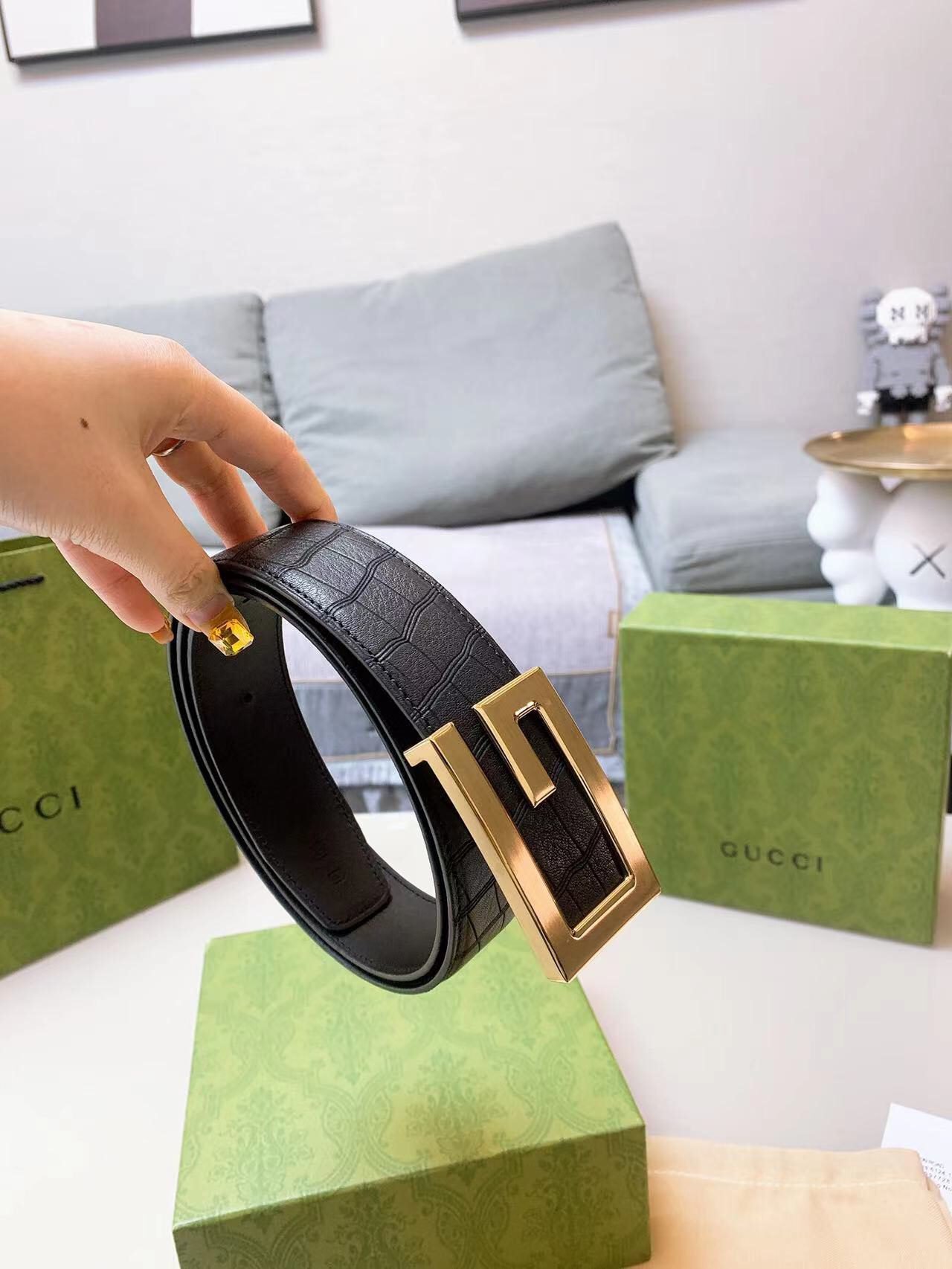 GUCCI square buckle black texture belt, with minimalist lines and eternal black color, interprets the brand’s classics and nobility. The belt is made of top-grade leather material and is made with exquisite craftsmanship. It has a soft and delicate touch and is durable. The square buckle head is made of Made of high-quality metal, with long-lasting luster and luxurious quality.