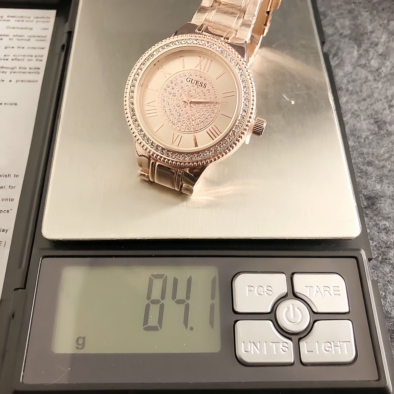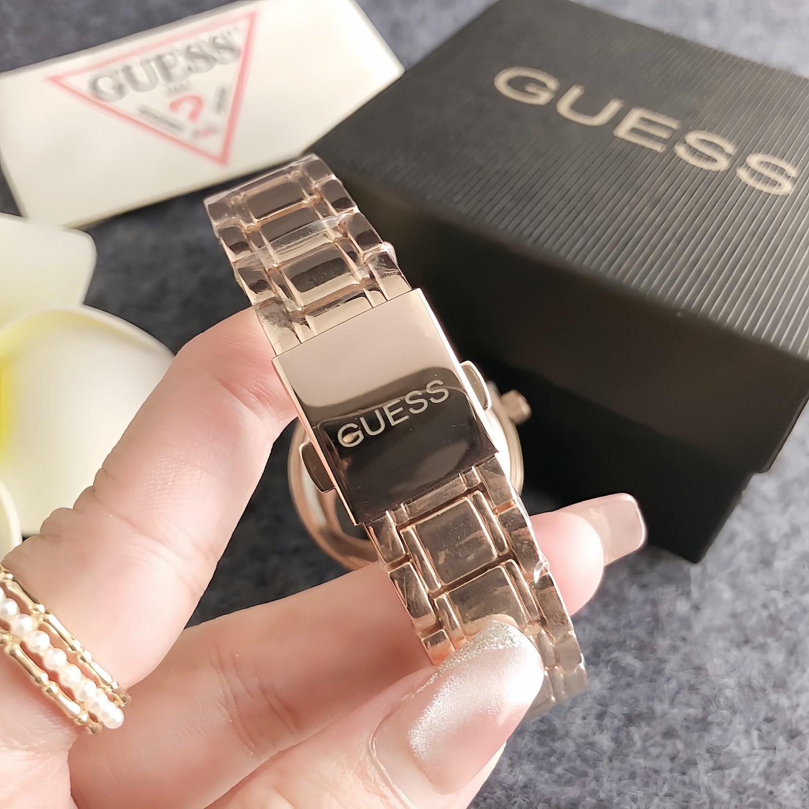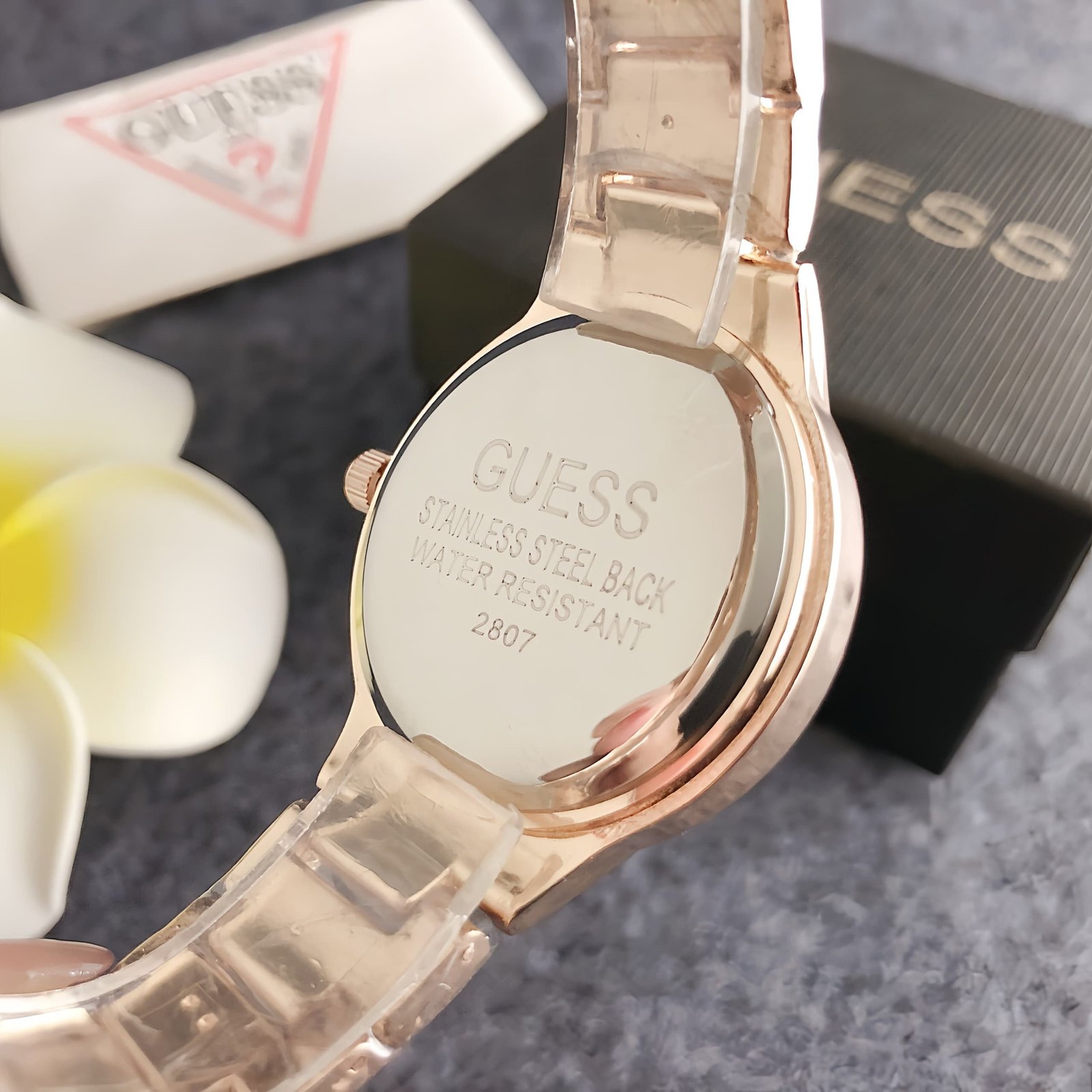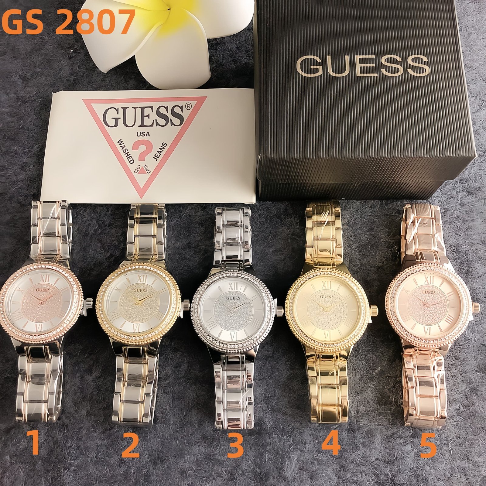 Guess GS 2807 series watches blend trendy style with luxurious details. Featuring elegant round dials with Roman numerals and shimmering crystal accents, these timepieces come in chic metal tones like silver, two – tone gold, gold, and rose gold. Paired with sleek metal bracelets, they are perfect for adding a touch of glamour to any outfit, whether for daily wear or special occasions.