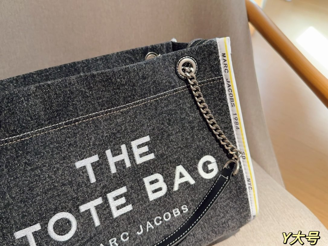 High end denim chain tote bag, size: 34 × 26 × 14cm