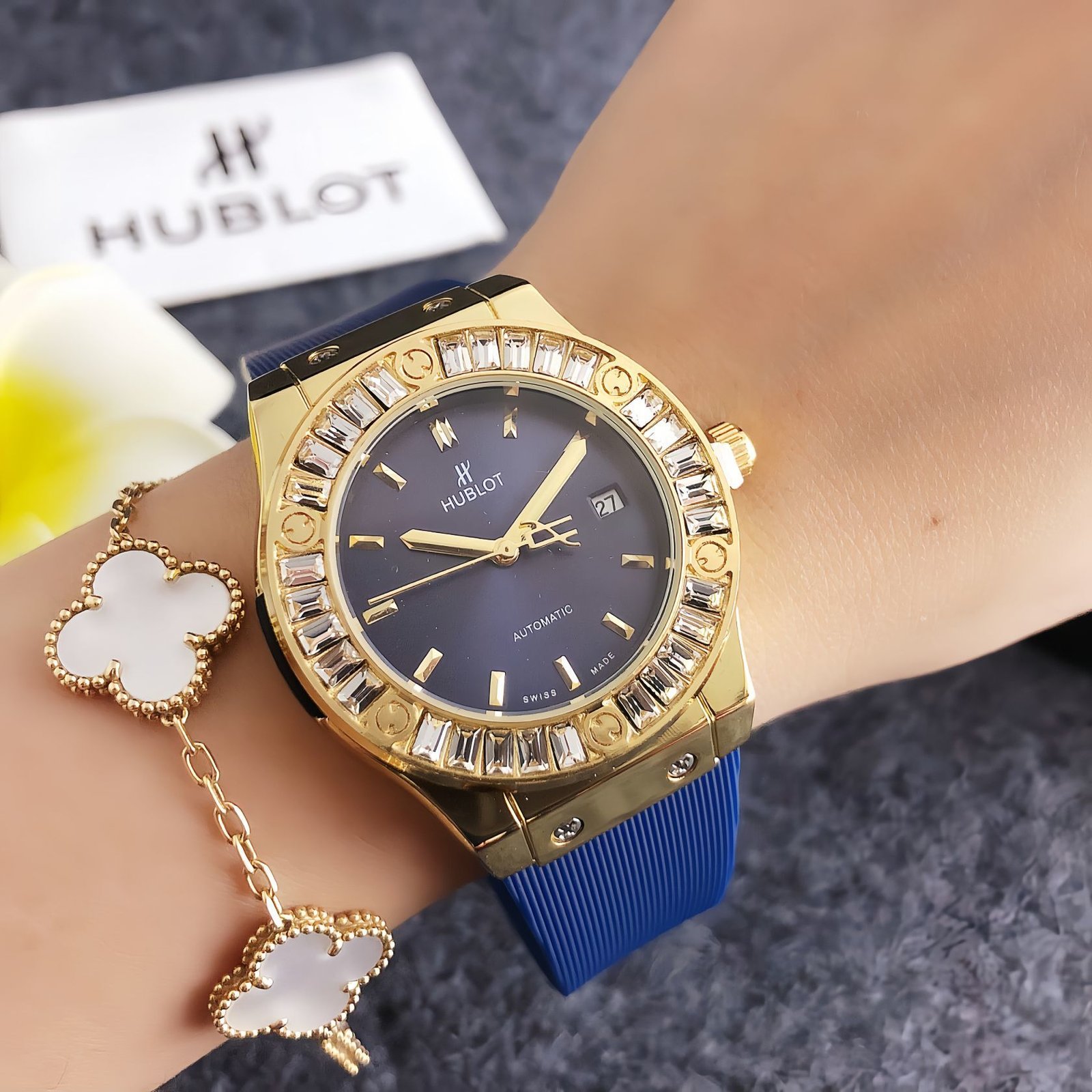 Hublot 841GO series watches embody avant-garde luxury, featuring bold cases with crystal-encrusted bezels, vibrant rubber straps in shades like red, green, blue, brown, and black, and the brand’s signature technical detailing. With Hublot’s legacy of innovative design and opulent craftsmanship, these timepieces exude dynamic sophistication. Perfect for those who appreciate a blend of high-octane style and colorful versatility, they make a striking statement suitable for both special occasions and bold daily ensembles.