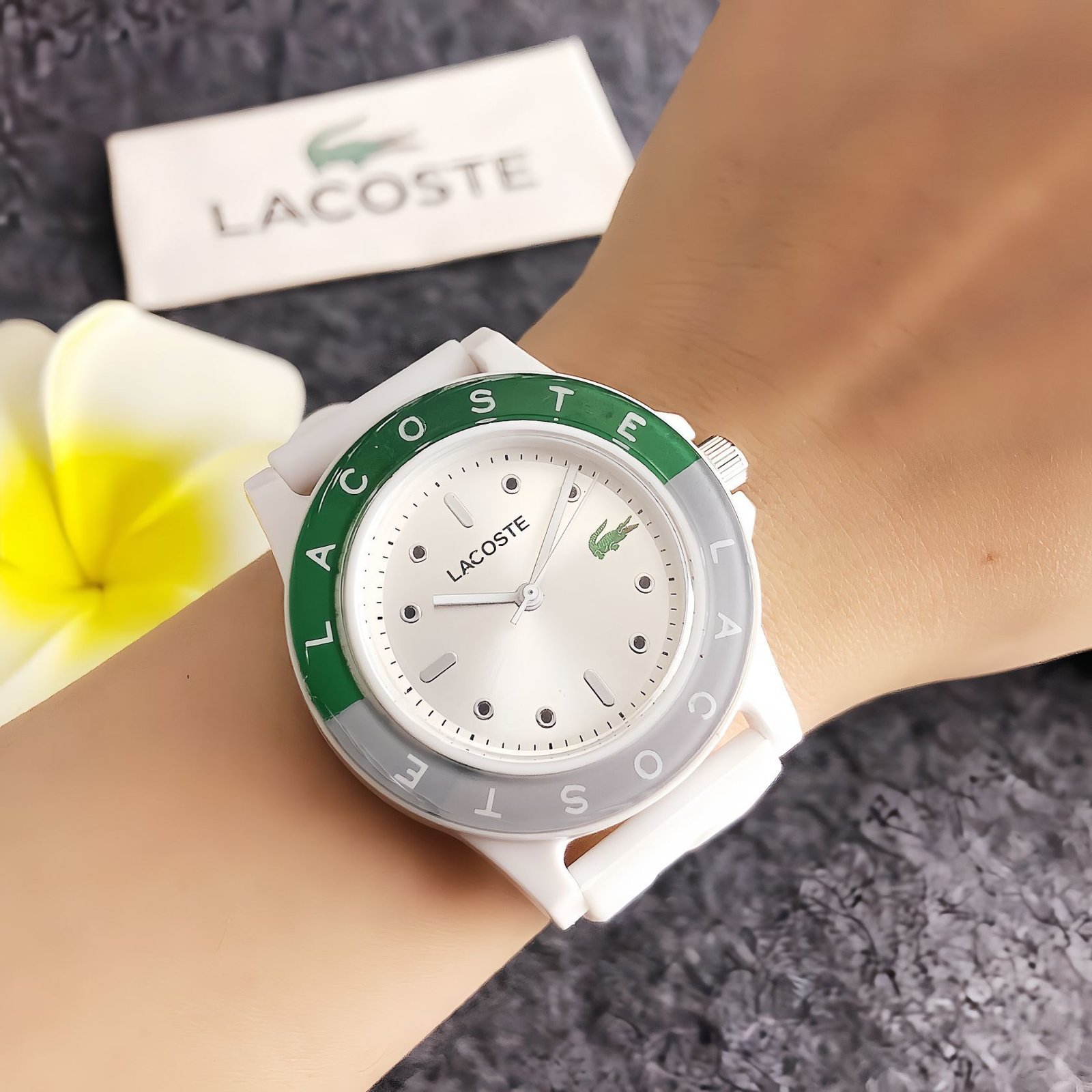 Lacoste LA A33 series watches blend energetic style with casual functionality. Featuring colorful silicone straps and the iconic Lacoste crocodile motif on the dials, they come in lively hues like white, pink, light blue, grey, navy, red, green, and black. Embodying Lacoste’s signature fusion of sporty spirit and modern fashion, these timepieces add a touch of vibrant charm to any look, perfect for those who love bold, versatile accessories that stand out in daily wear, outdoor activities, or casual outings.