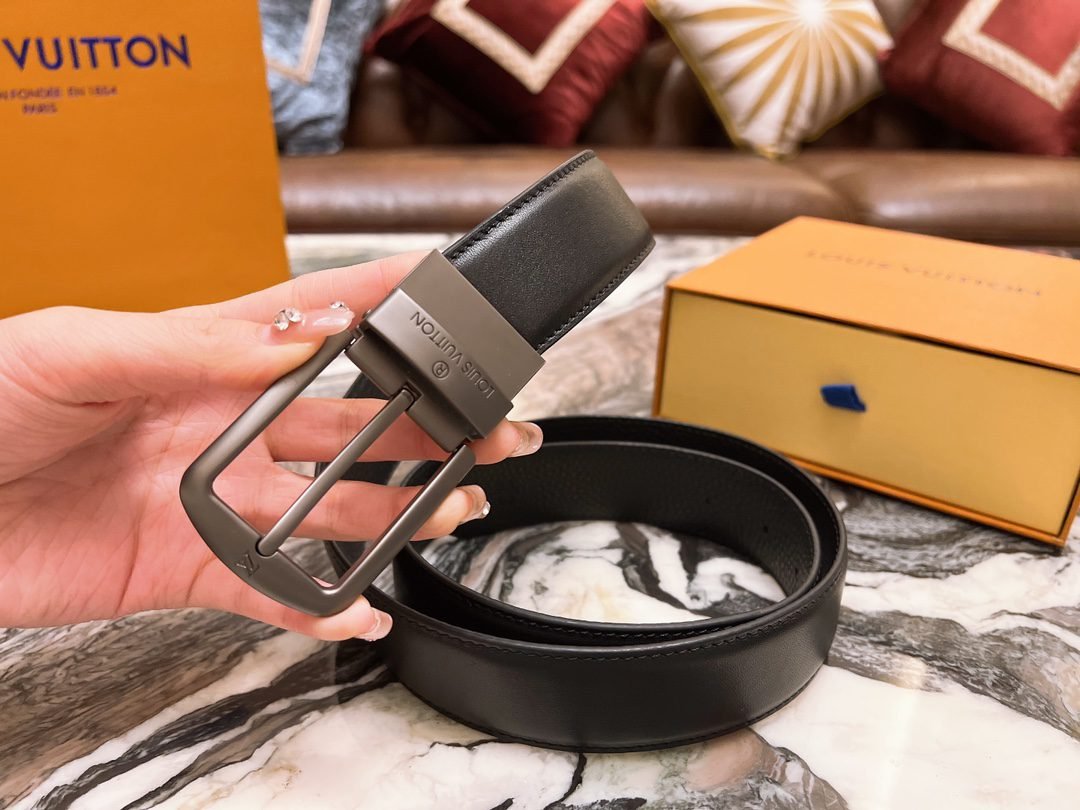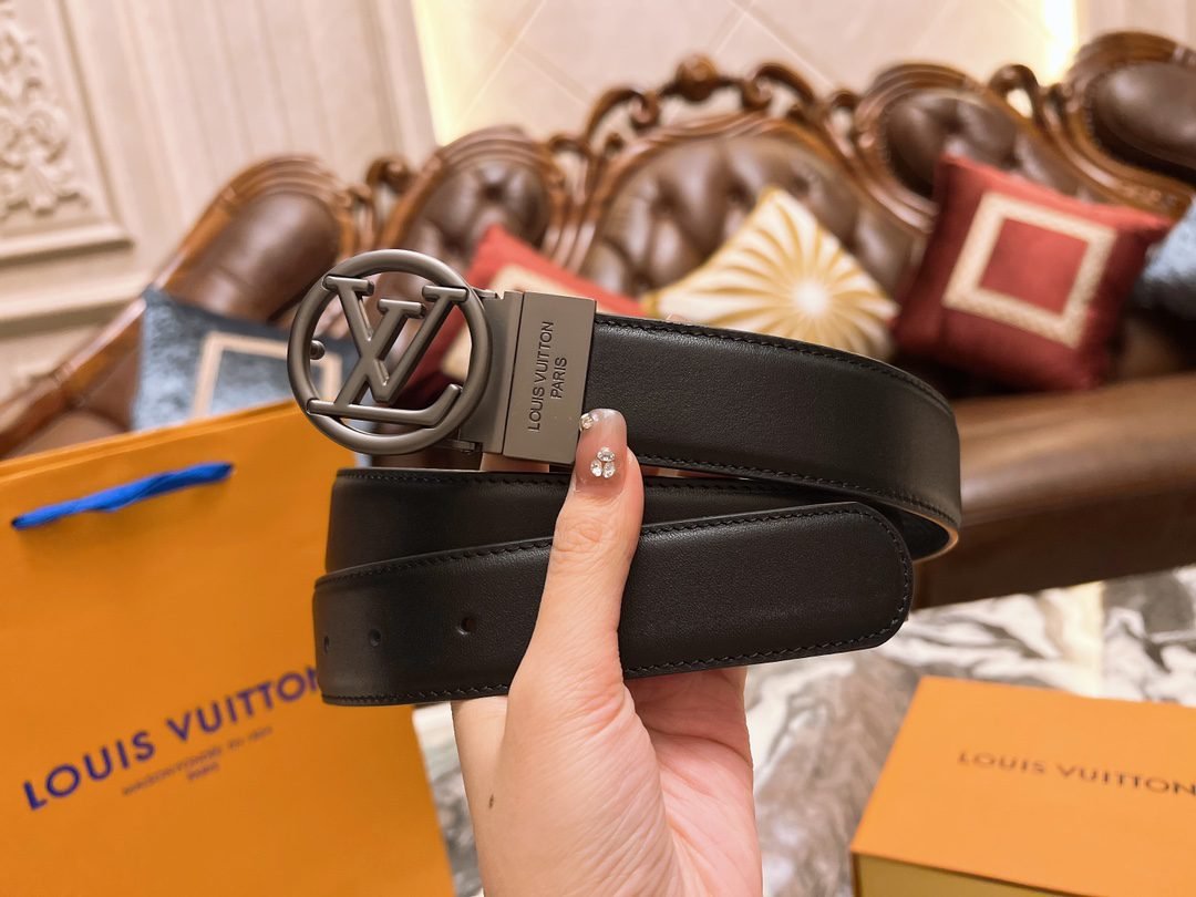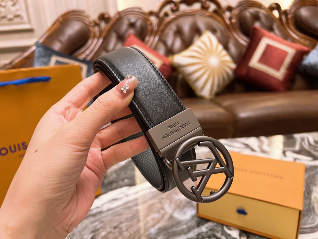Home Belt LV belt Louis Vuitton classic double buckle V-buckle belt gift box set, simple and elegant, low-key luxury